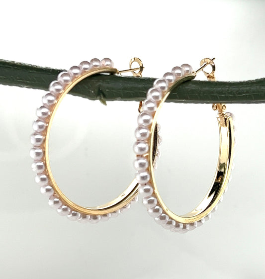 Classic Pearl Beaded Gold Tone Hoop Earrings