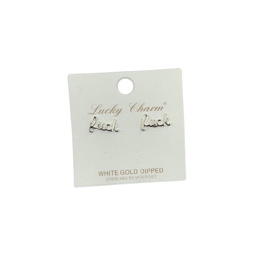 Cursive Dainty FUCK Post Back Earrings - In Gold & Silver