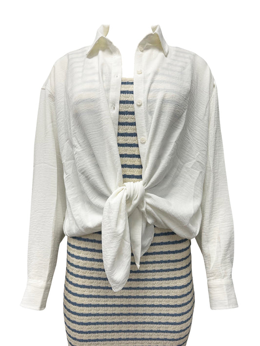 100% Cotton Striped Fly Away Fringe Cardigan - IvoryRegular price $36.99 USDRegular priceUnit price / per-