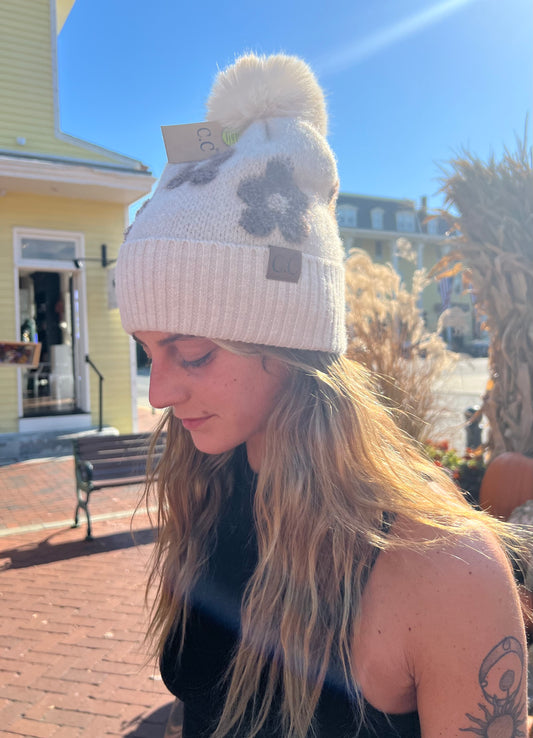 Daisy Seed Bead Floral Drop Gold Hoop Earrings - In 5 Colors