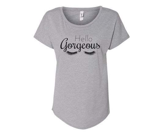 Hello Gorgeous Lashes Ladies Tee Shirt - In Grey & White