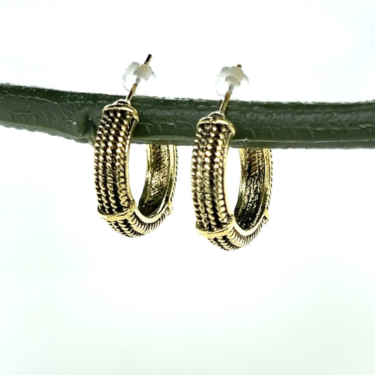 Antiqued Silver Bead Inlay Hoops - In 2 Colors