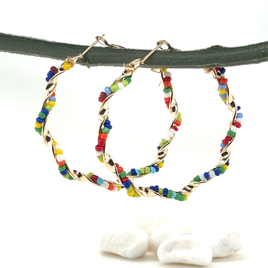 Sold outSeed Bead Twisted Hoop Earrings