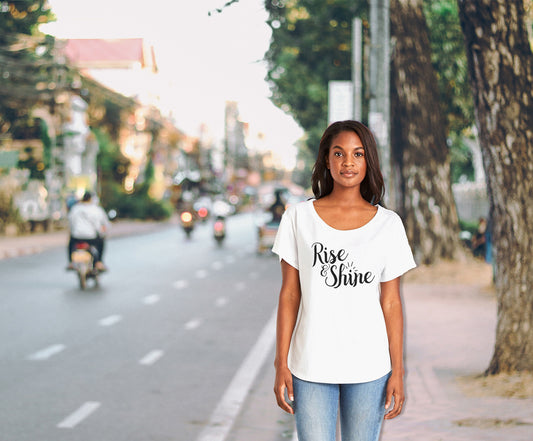 Rise & Shine Ladies Tee Shirt - In Grey & White