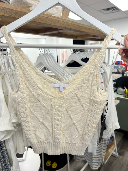 V-Neck Cable Knit Sweater Tank Top - Cream