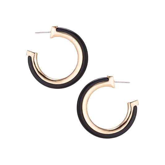 Gold Trim & Acrylic Open Hoop Earring - In 3 Colors