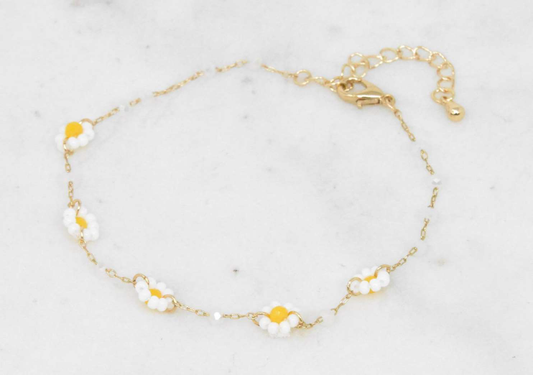 Pull Through Bolo Baby Daisy Bracelet - Gold & White