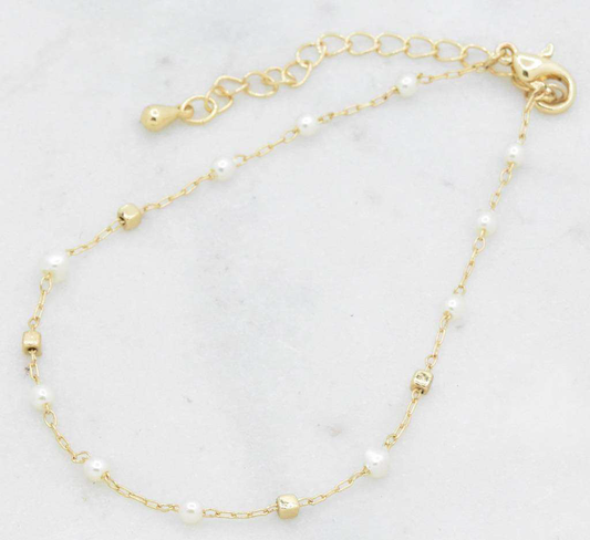 Dainty Pearl Spaced Chain Link Bracelet - Gold
