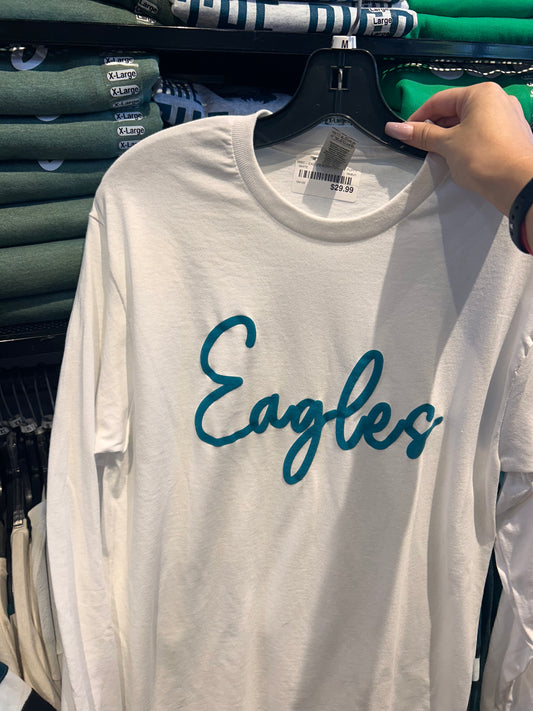 Eagles 3D Script Long Sleeve Tee - White & Green TextRegular price $29.99 USDRegular priceUnit price / per-