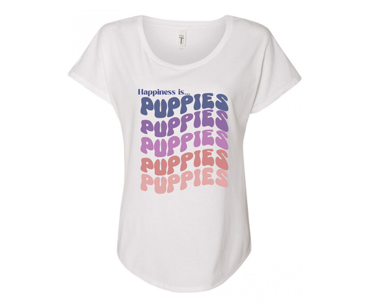 Happiness is Puppies Ladies Tee Shirt - In White & GreyRegular price $24.99 USDRegular priceUnit price / per$24.99 USDSale price $24.99 USD