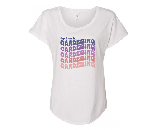 Happiness is Gardening Ladies Tee Shirt - In White & GreyRegular price $24.99 USDRegular priceUnit price / per$24.99 USDSale price $24.99 USD