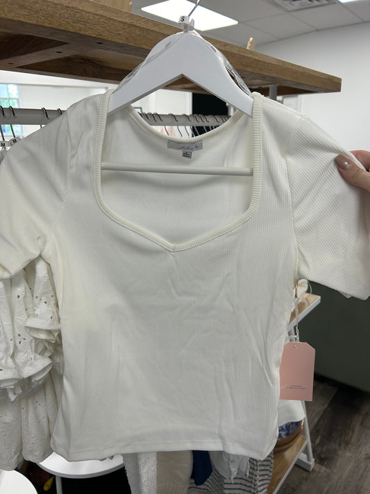 Sweetheart Neckline Basic Fitted Tee - Off White
