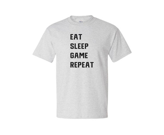 Eat Sleep Game Repeat T-Shirt - In White & GreyRegular price $24.99 USDRegular priceUnit price / per