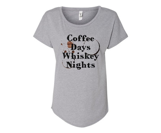 Coffee Days Whiskey Nights Ladies Tee Shirt - In Grey & WhiteRegular price $24.99 USDRegular priceUnit price / per$24.99 USDSale price $24.99 USD