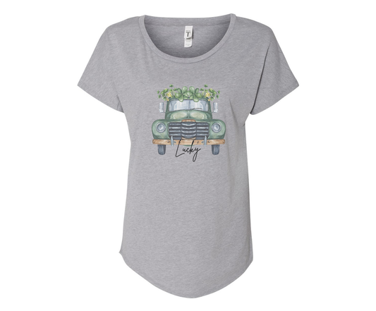 Lucky Vintage Truck Ladies Tee Shirt - In Grey & White