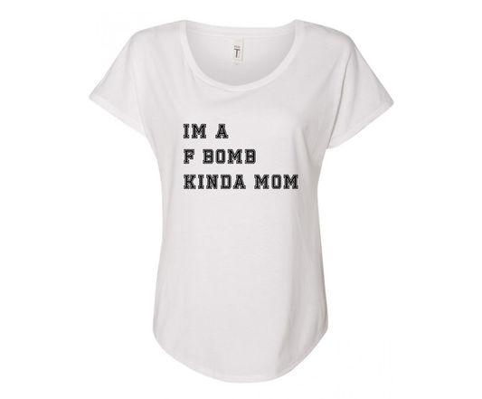 Im A F Bomb Kinda Mom Ladies Tee Shirt - In Grey & White
