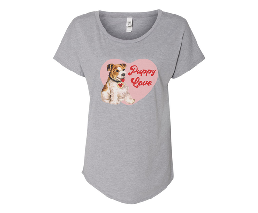 White & Brown Puppy Love Ladies Tee Shirt - In Grey & WhiteRegular price $24.99 USDRegular priceUnit price / per$24.99 USDSale price $24.99 USD