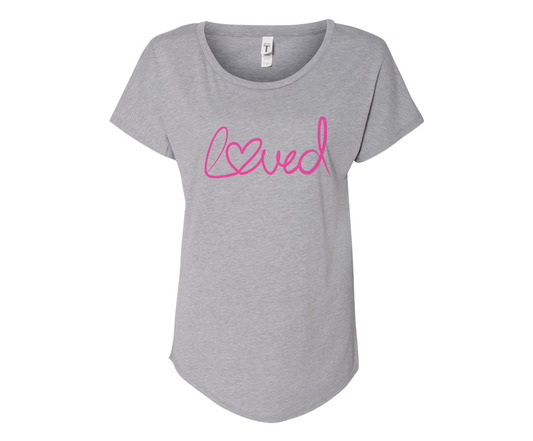 Loved Heart Ladies Tee Shirt - In Grey & White