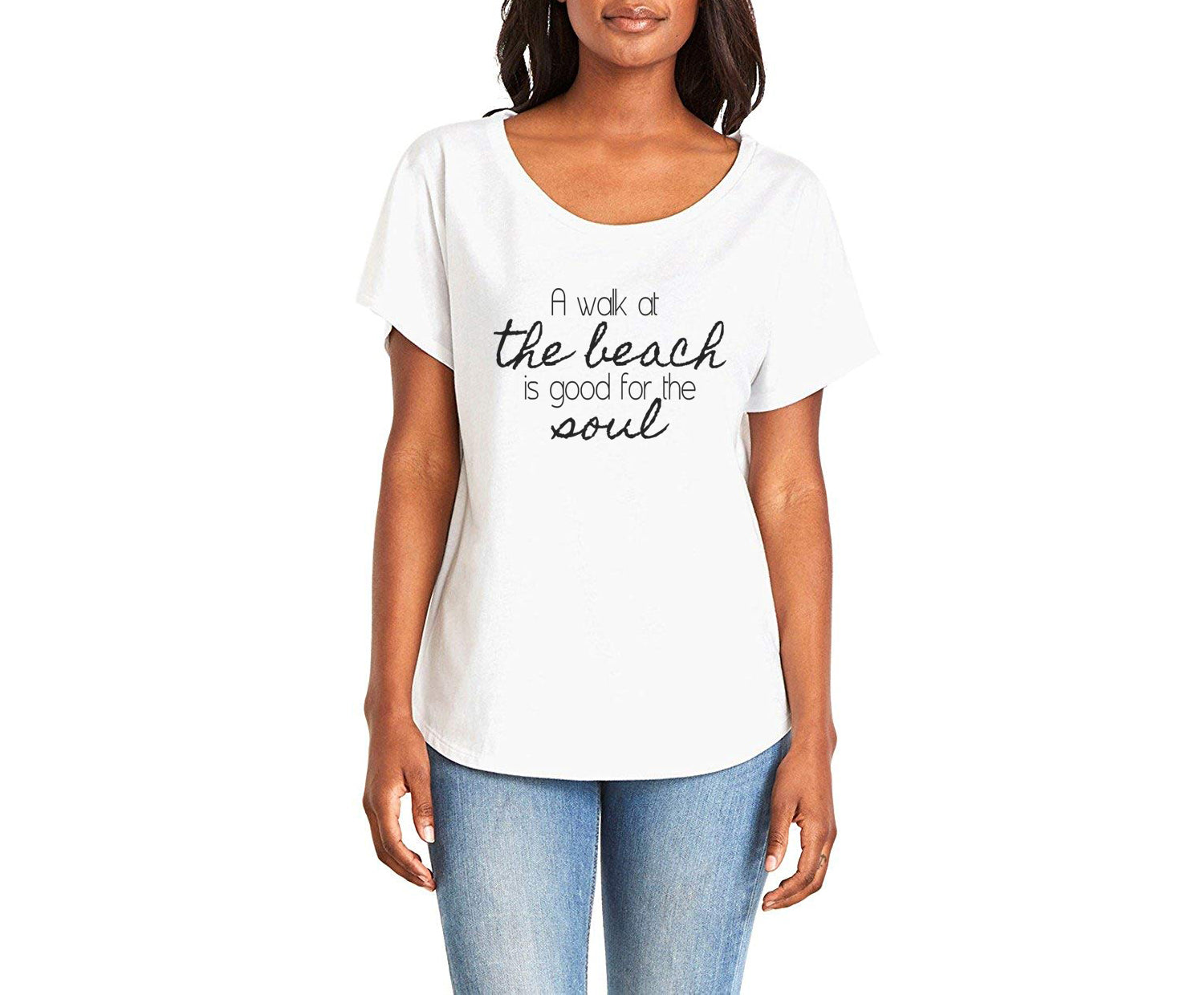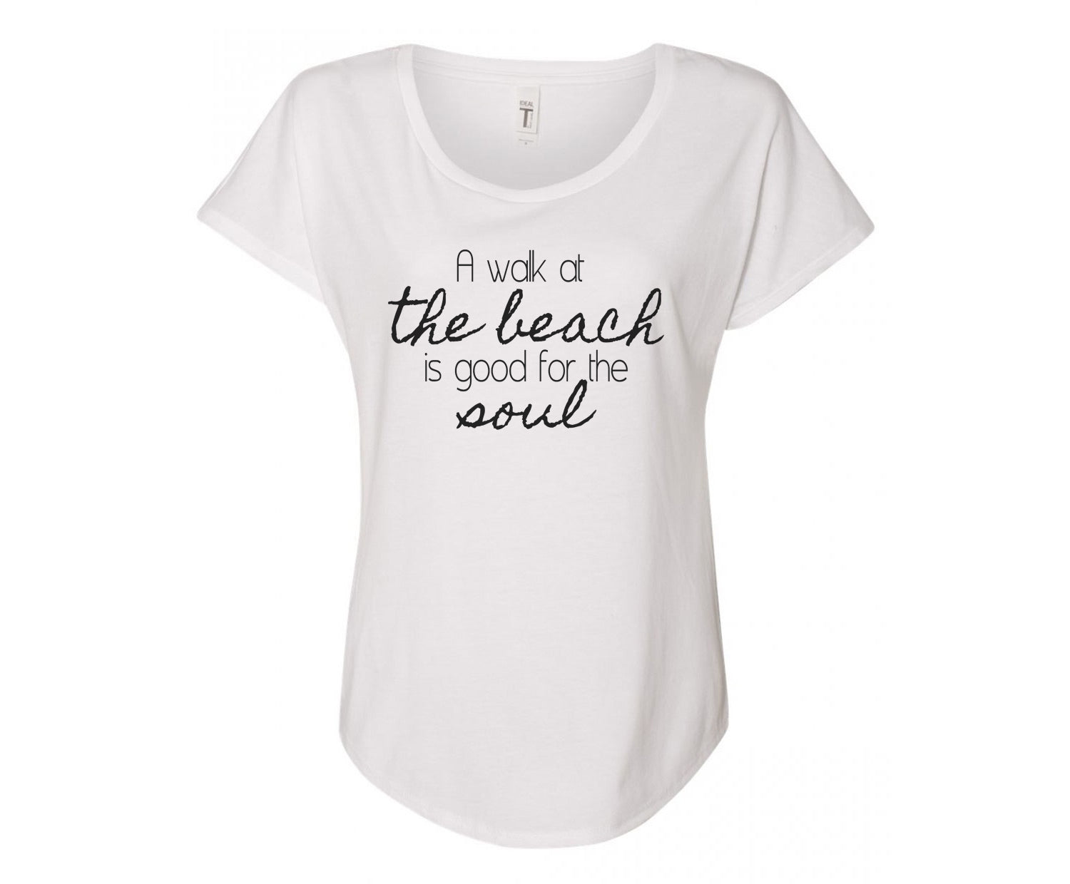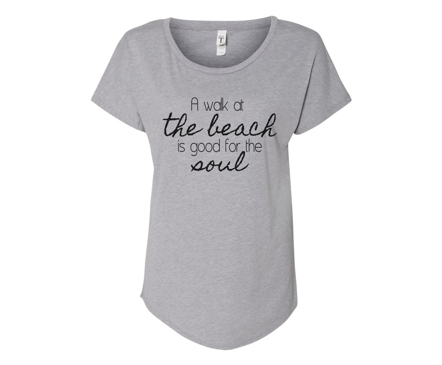 A Walk At The Beach Is Good For The Soul Ladies Tee Shirt - In Grey & White