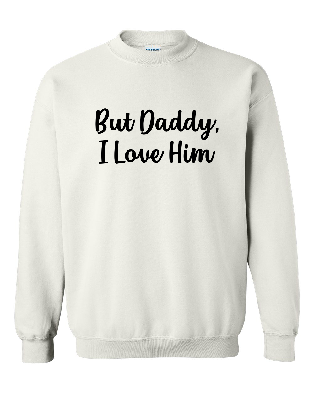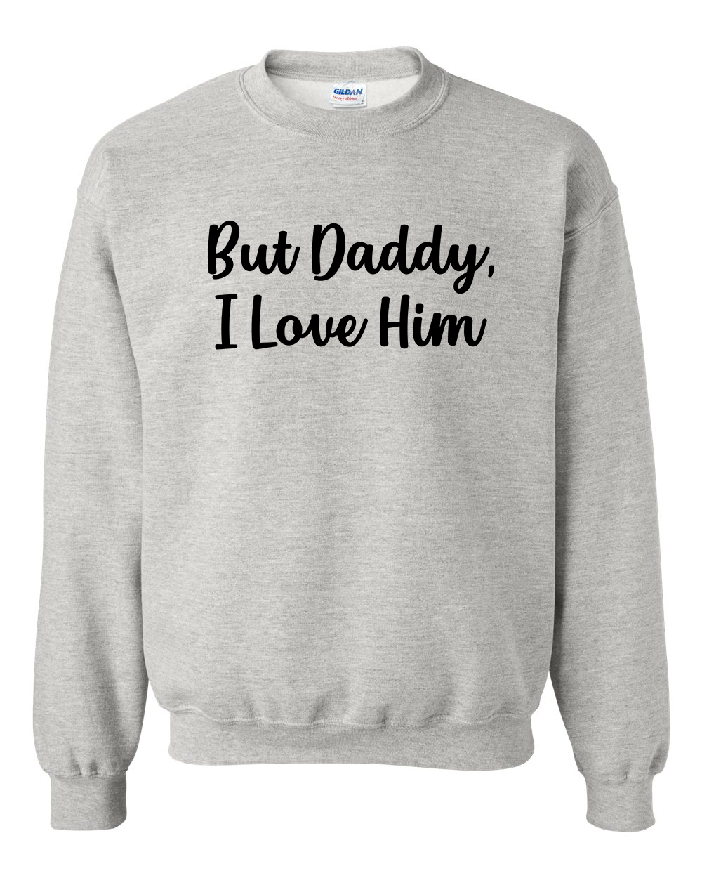 But Daddy, I Love Him shirt is printed on a Gilden Unisex Heavy Blend Crewneck Sweatshirt.