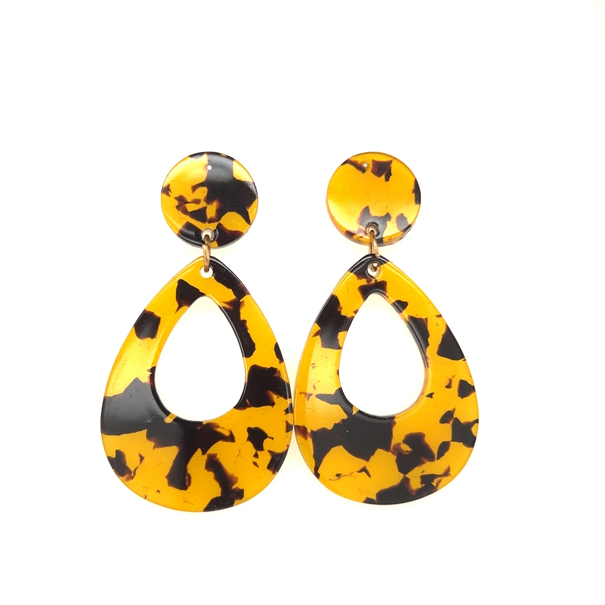 Button & Teardrop Cut Out Acrylic Tortoise Dangle Earring