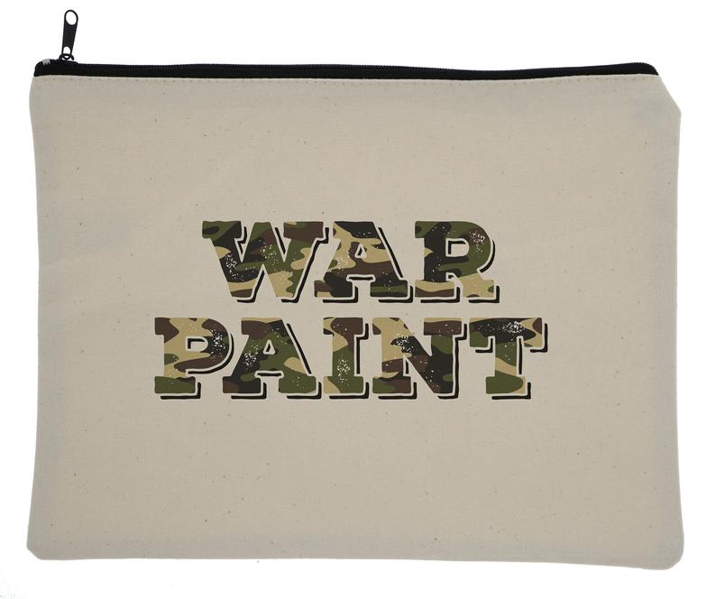 Our zippered bag is 100% cotton and made in USA. The canvas bag measures 10 and 3/4 inches by 8 and 1/4 inches. This zipper tote is printed on one side and makes for a perfect light weight bag for anything you can imagine. The 8oz bag packs completely flat for easy storage.