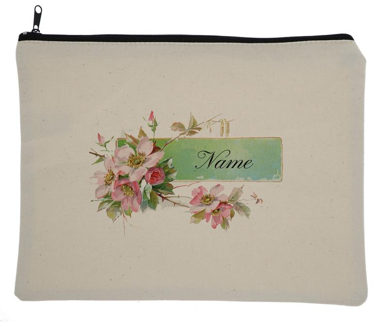Canvas Custom Name Zipper Bag With Vintage Flowers