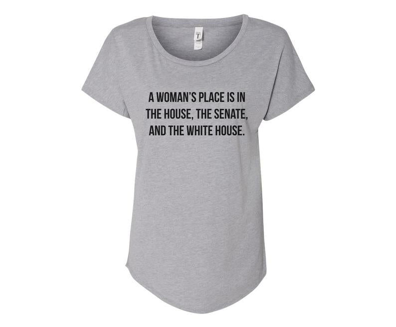 A Woman's Place Ladies Tee Shirt - In Grey & White