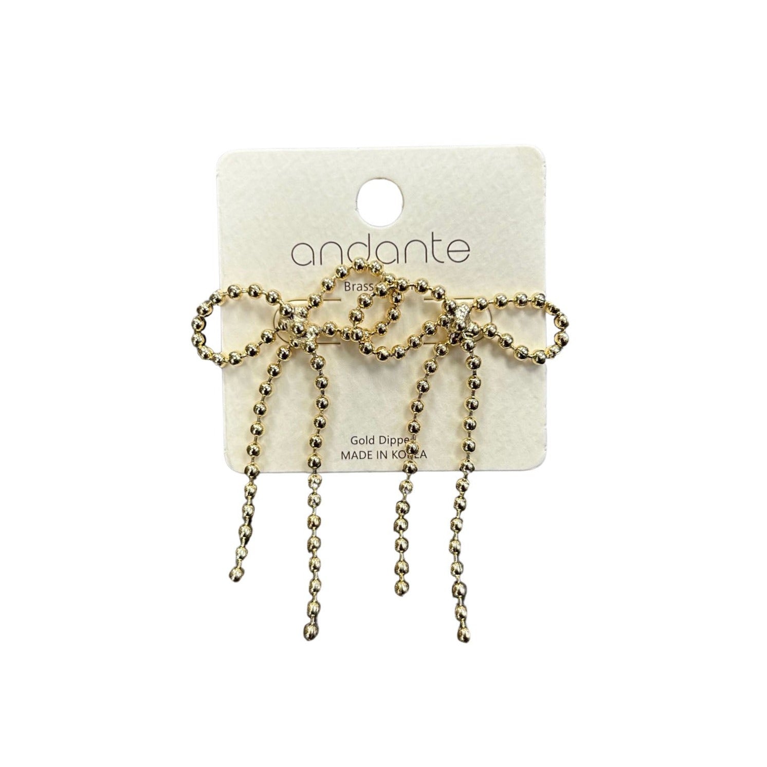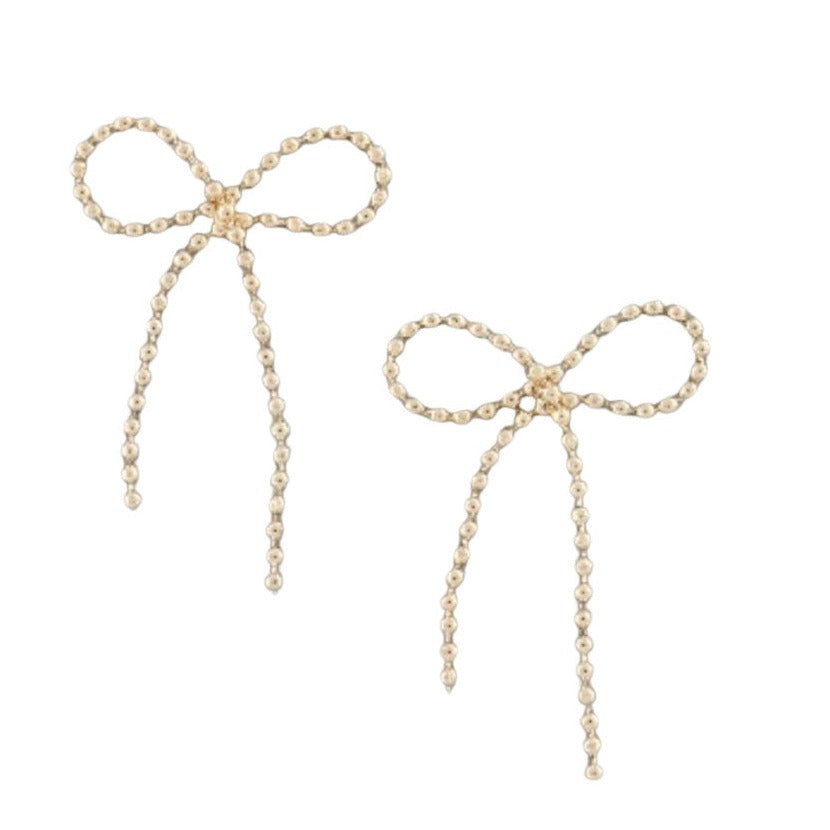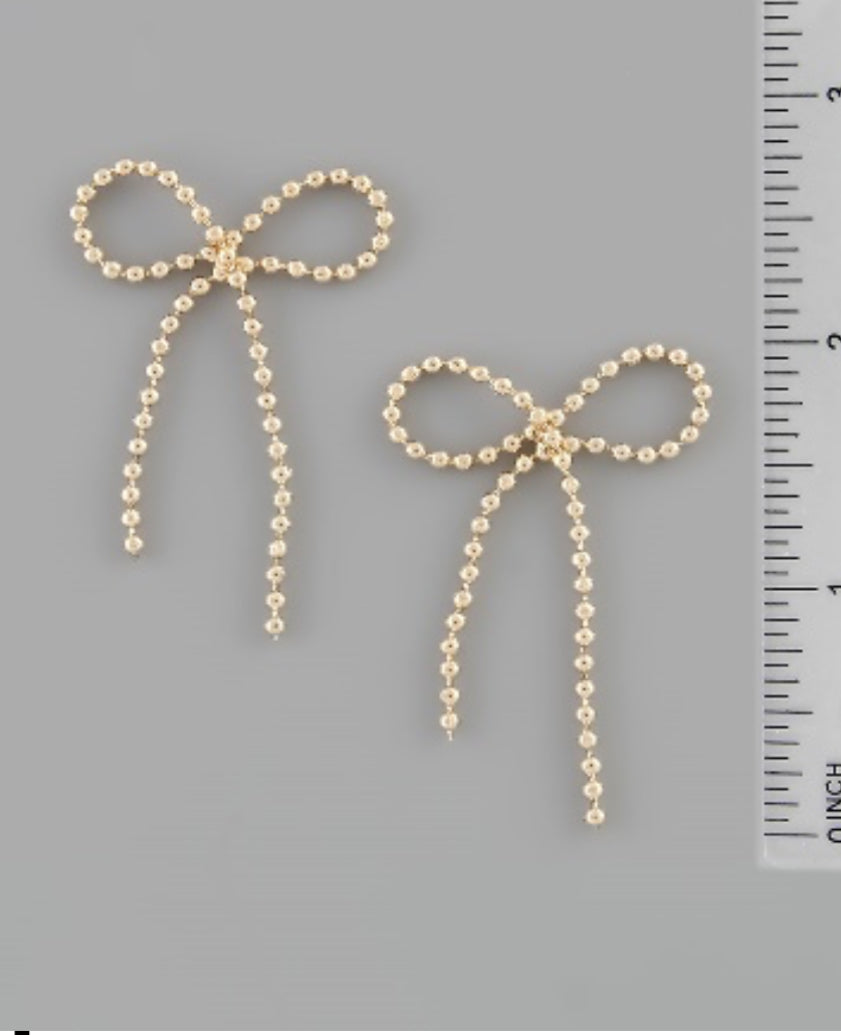 Get in on the fun with these trendy Dangling Ball Link Chain Bow Earrings in gold! Equipped with secure post backing, these gold dipped earrings move with you, adding a touch of girly charm to any outfit.