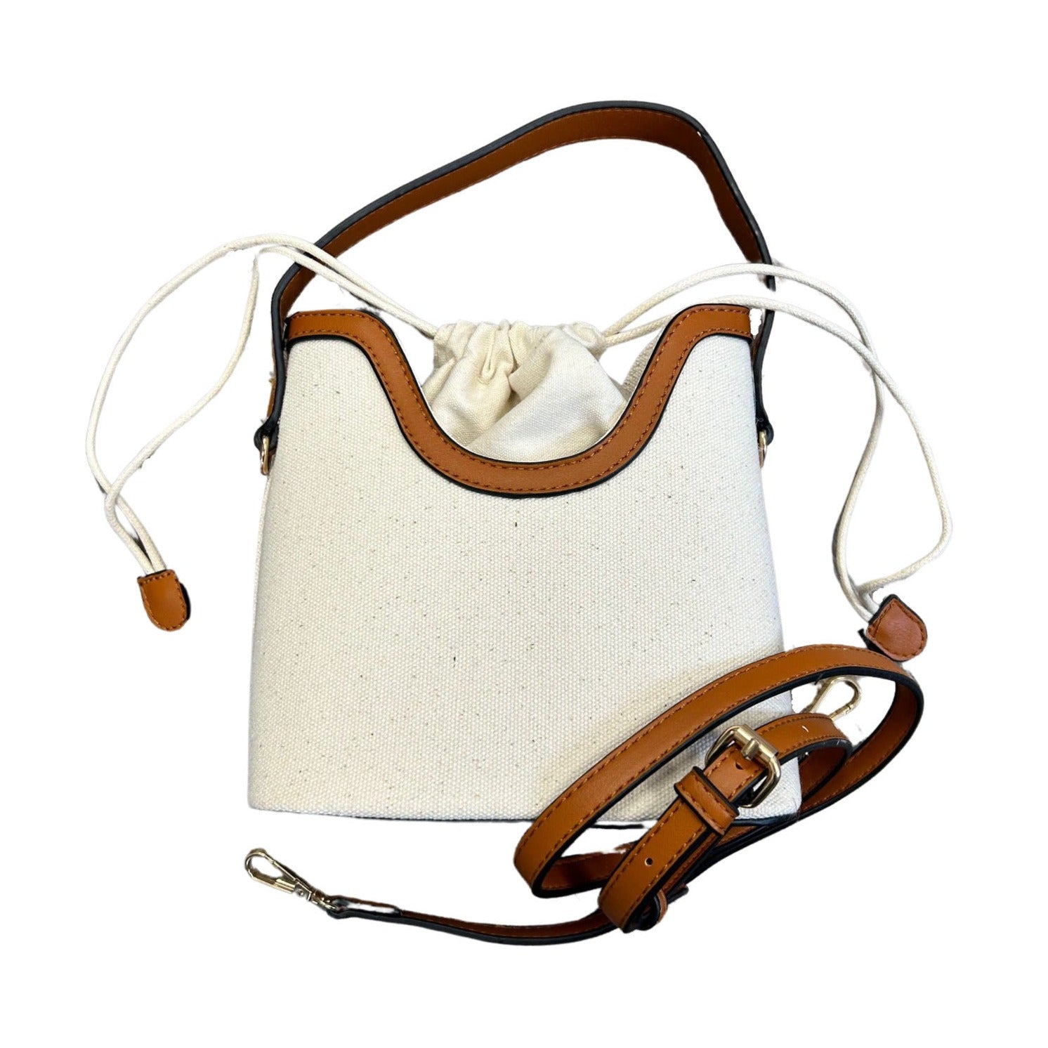 Drawstring Top Canvas & Camel Faux Leather BagRegular price $29.99 USDRegular priceUnit price / per-