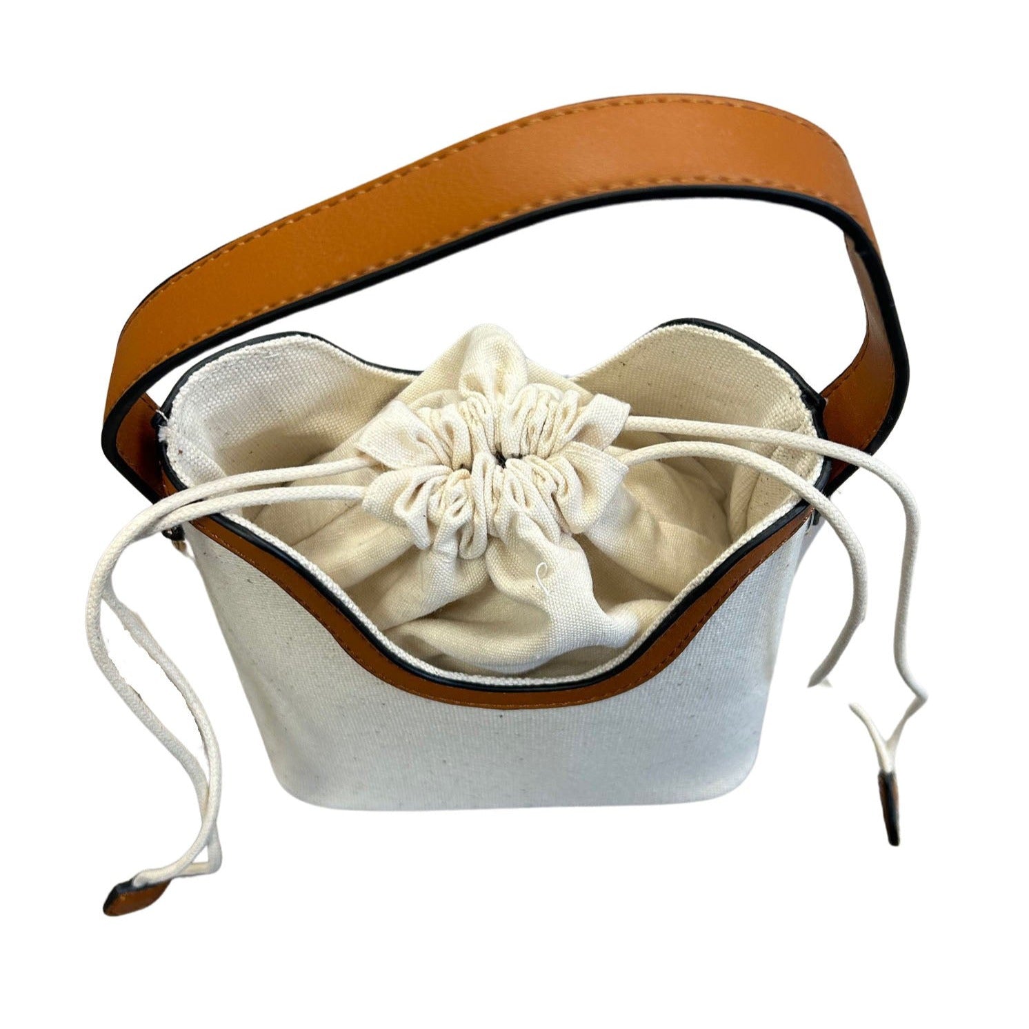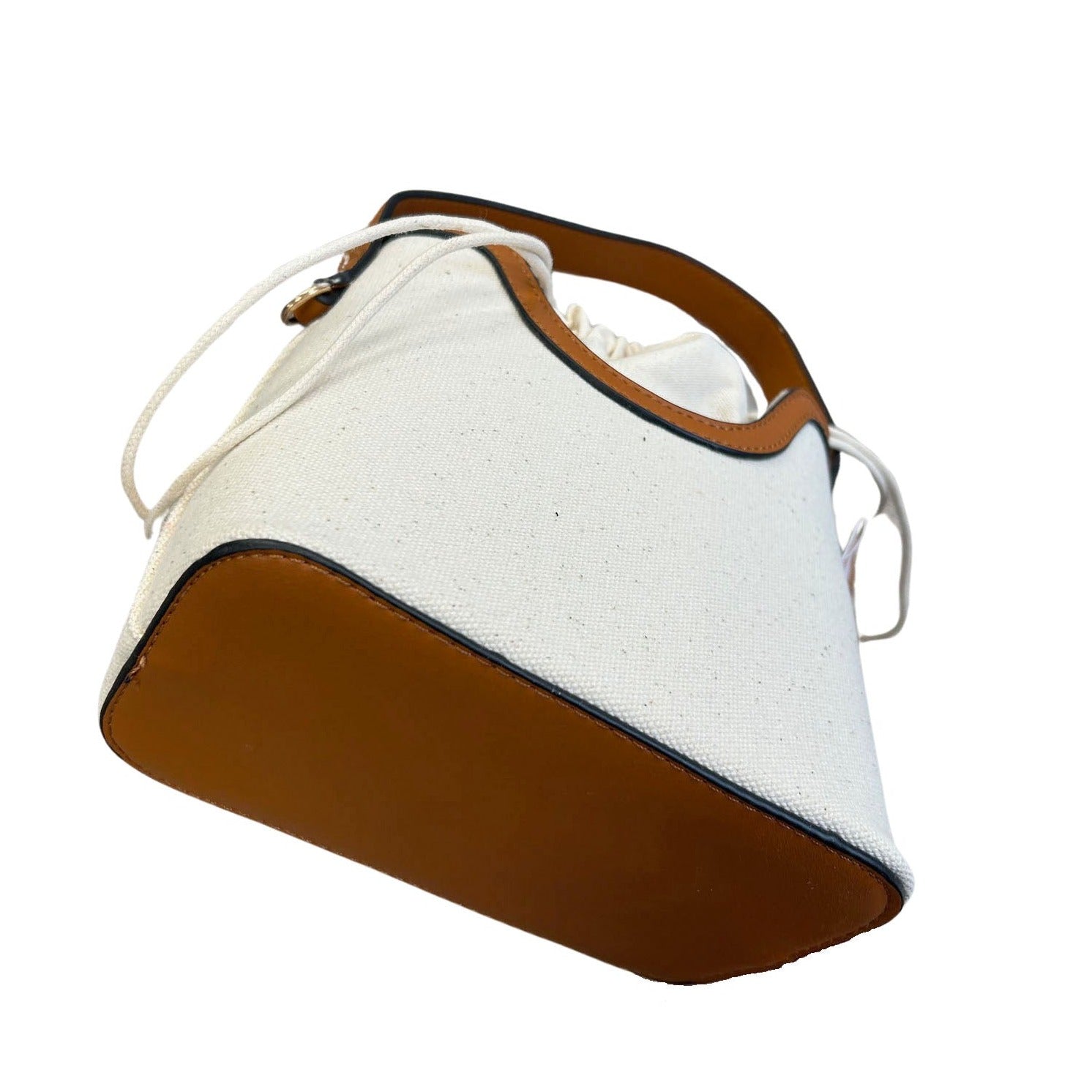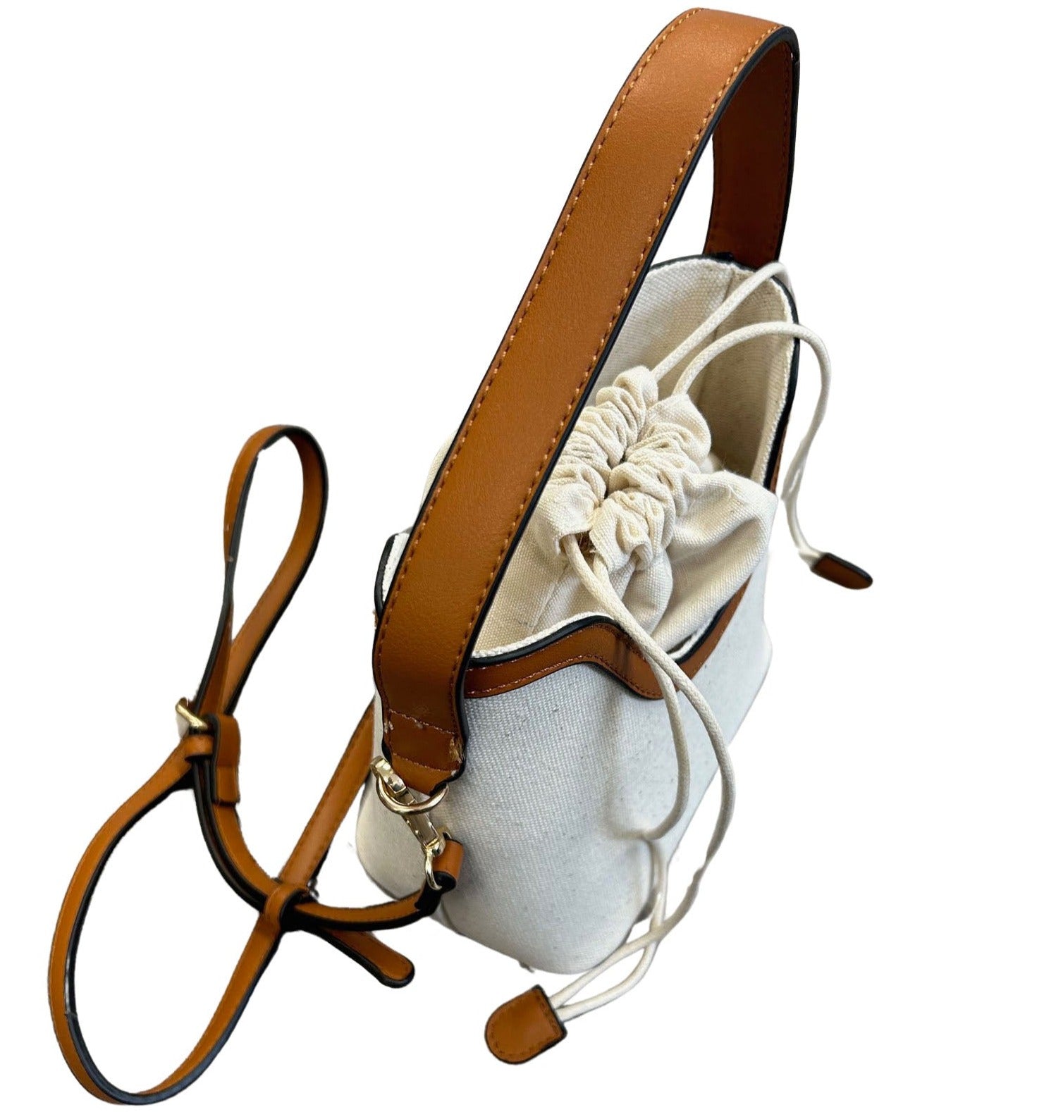 Drawstring Top Canvas & Camel Faux Leather Bag