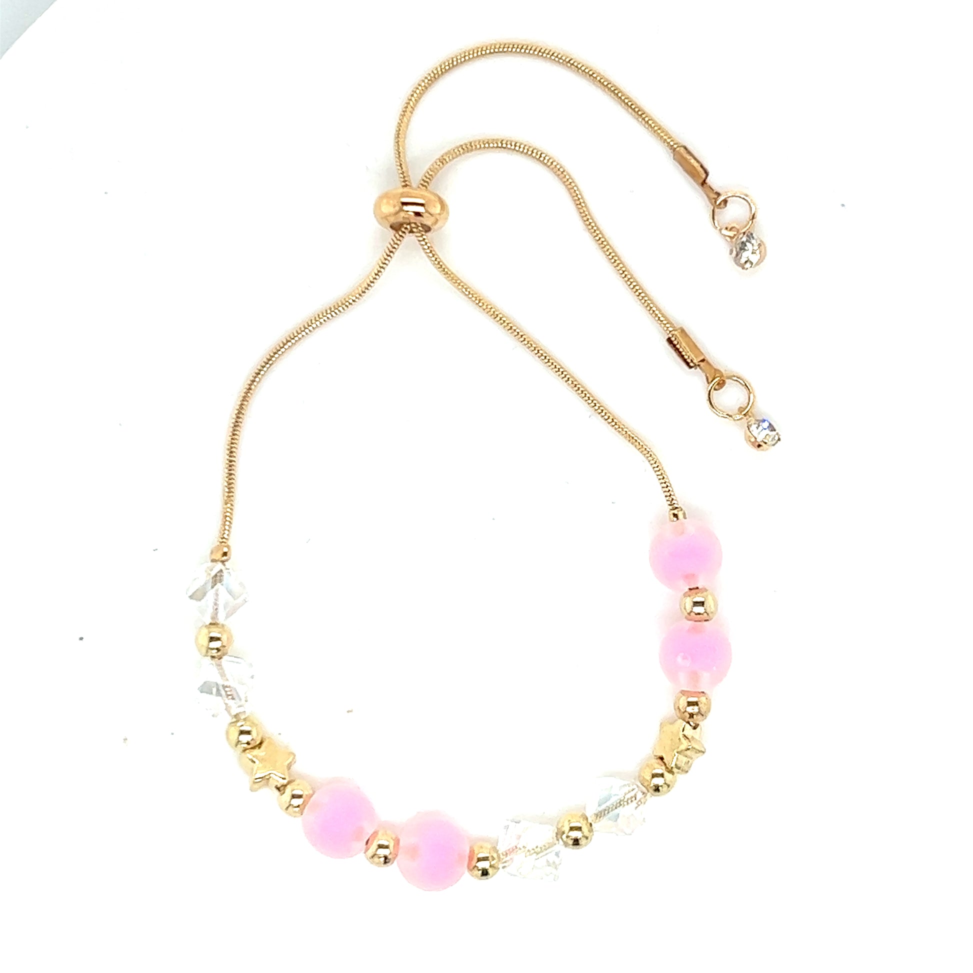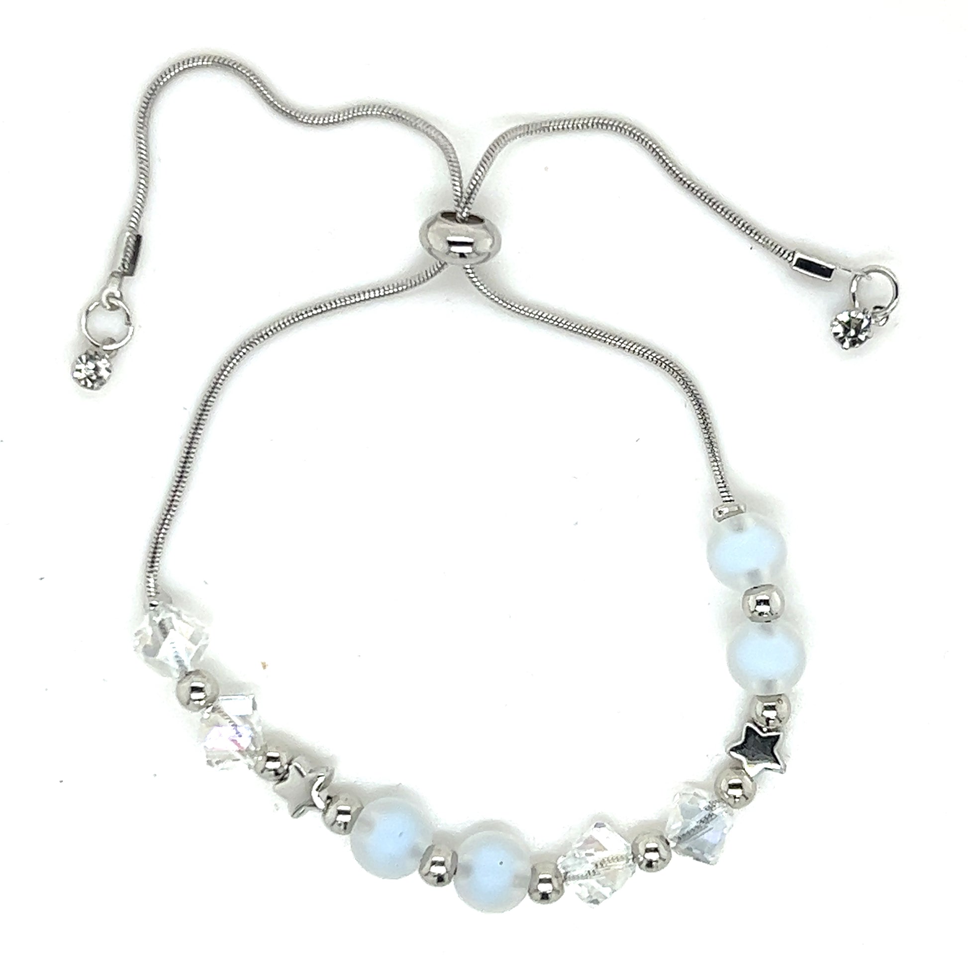 Frosted Crystal & Star Beaded Bolo Bracelet