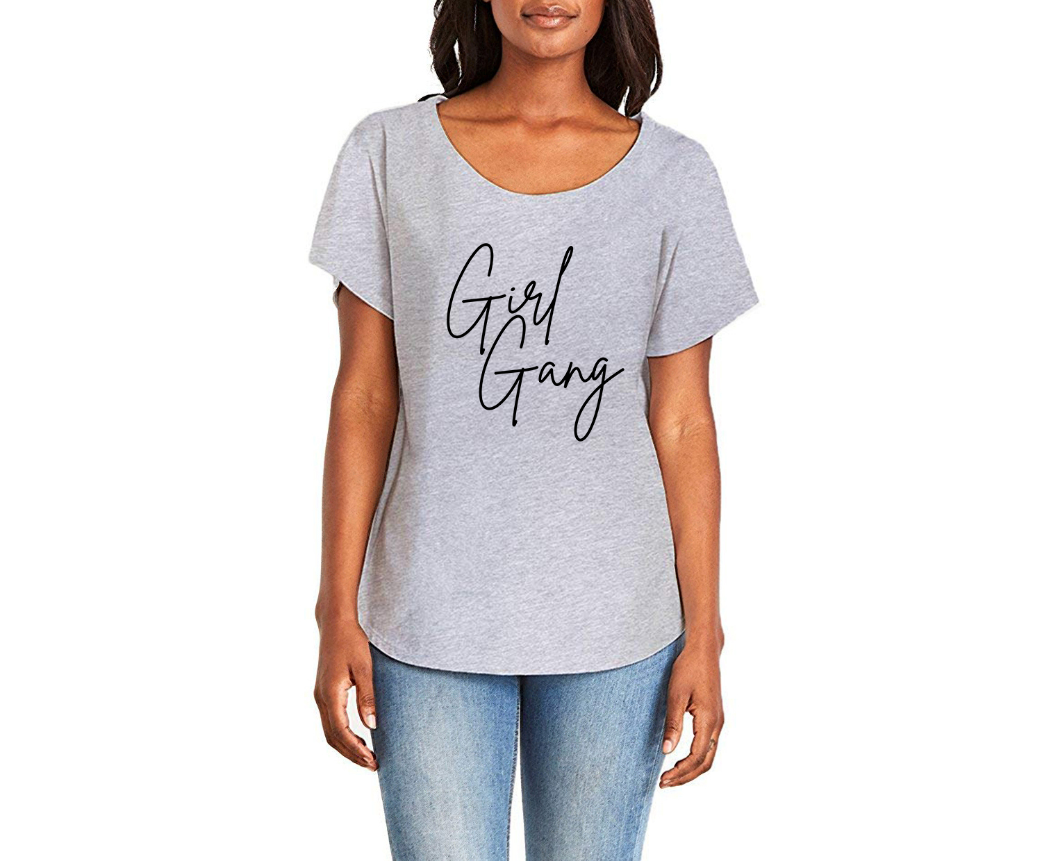 Girly Girl Gang Ladies Tee Shirt - In Grey & White
