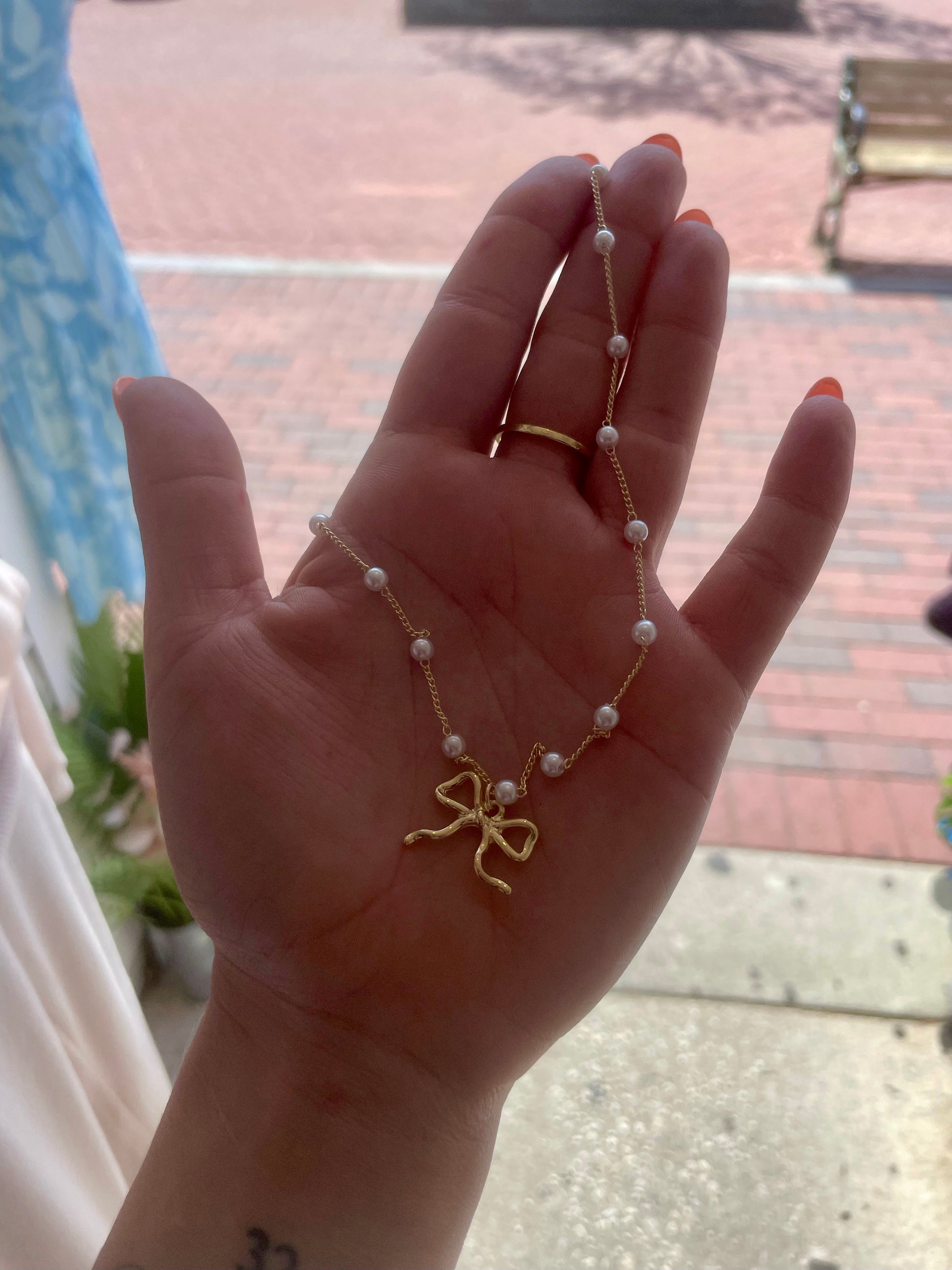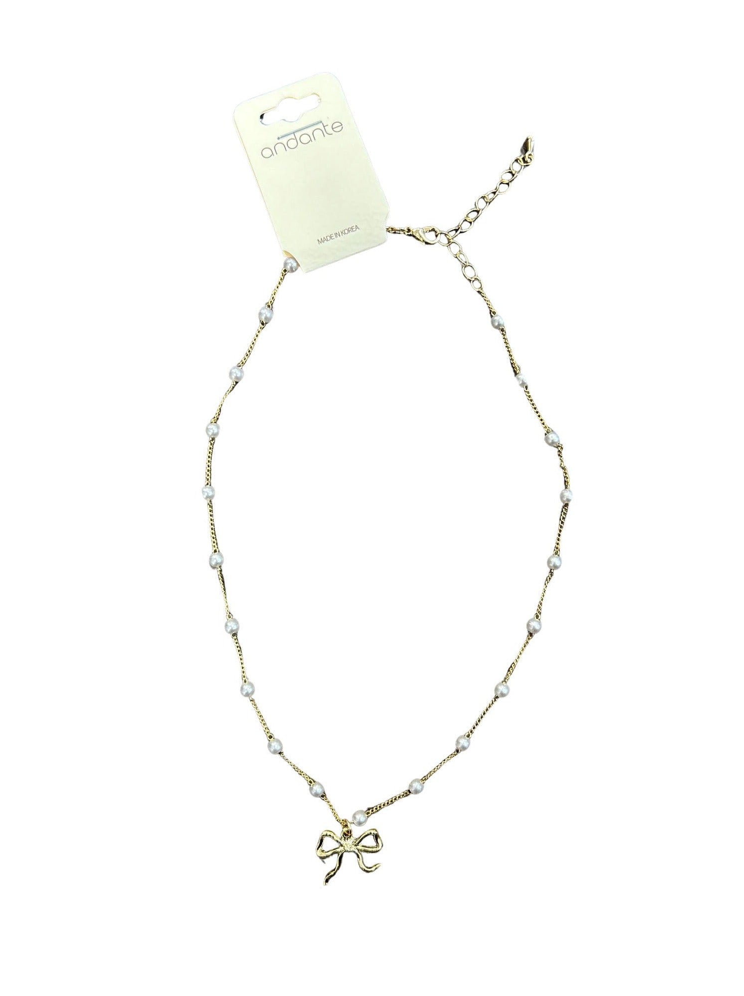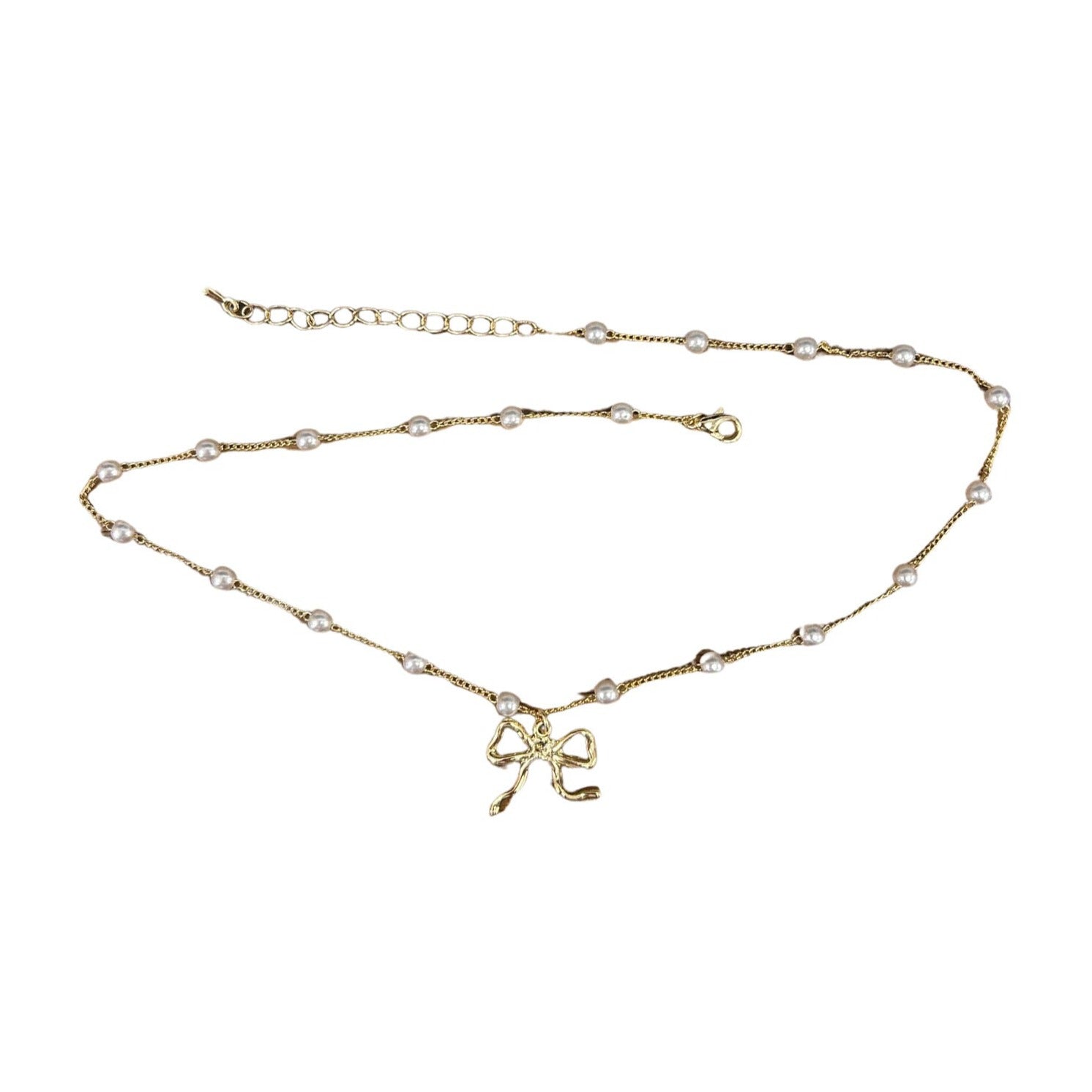 Add a touch of whimsy to your style with this Golden Bow charm & Floating Pearl Necklace. The adjustable length and gold toned chain make it a versatile and charming addition to any outfit.