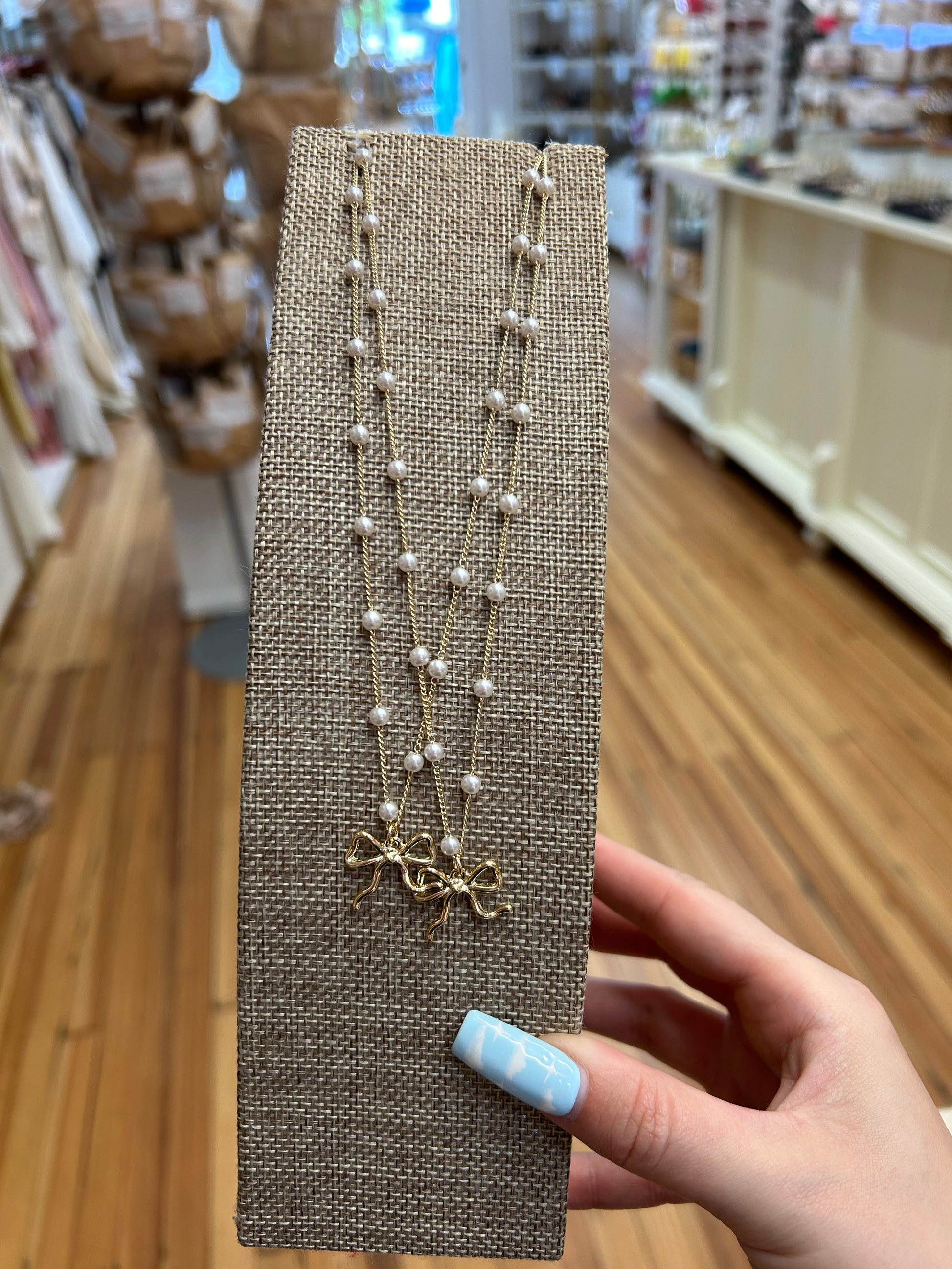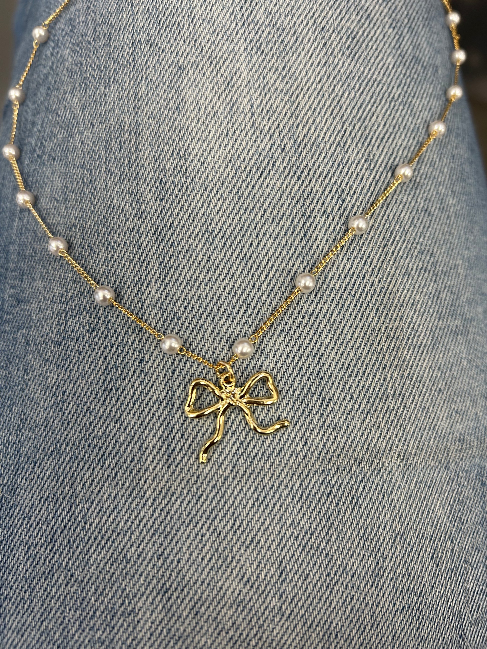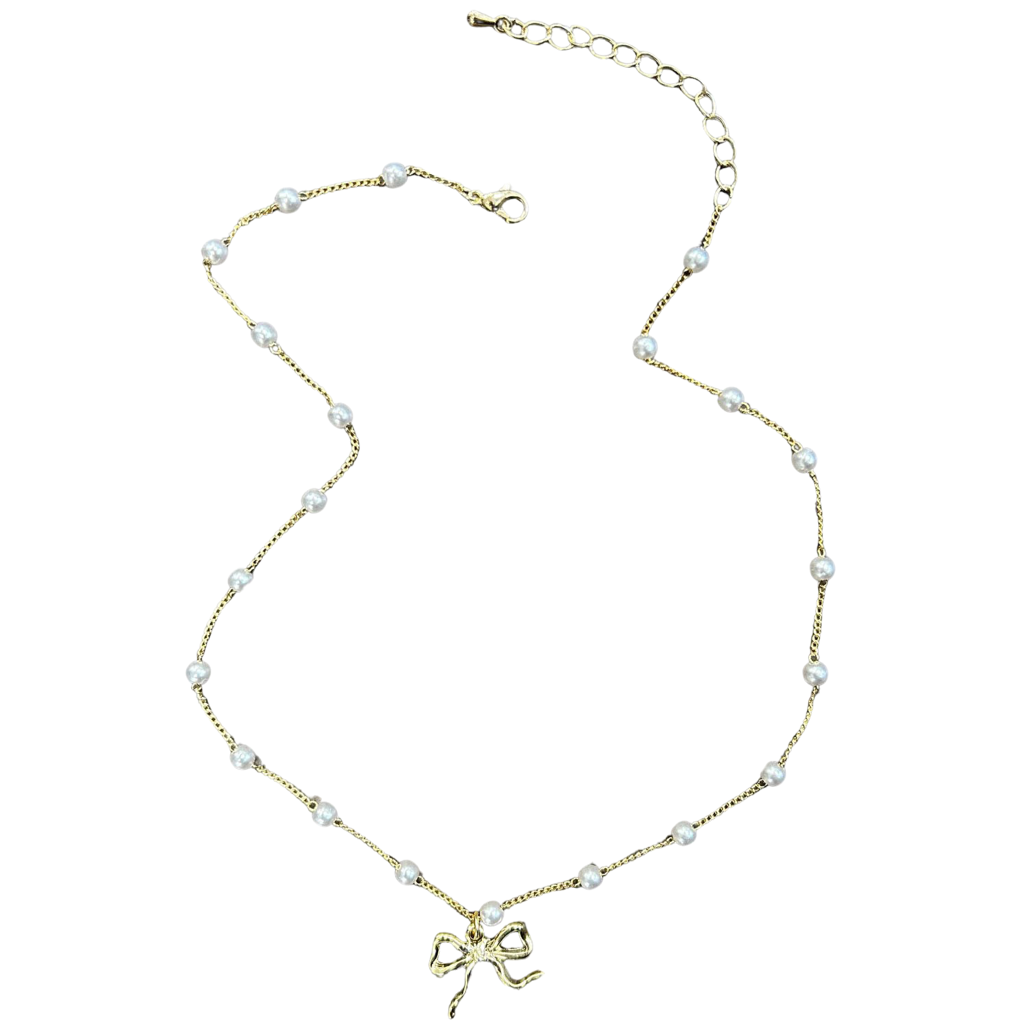 Add a touch of whimsy to your style with this Golden Bow charm & Floating Pearl Necklace. The adjustable length and gold toned chain make it a versatile and charming addition to any outfit.