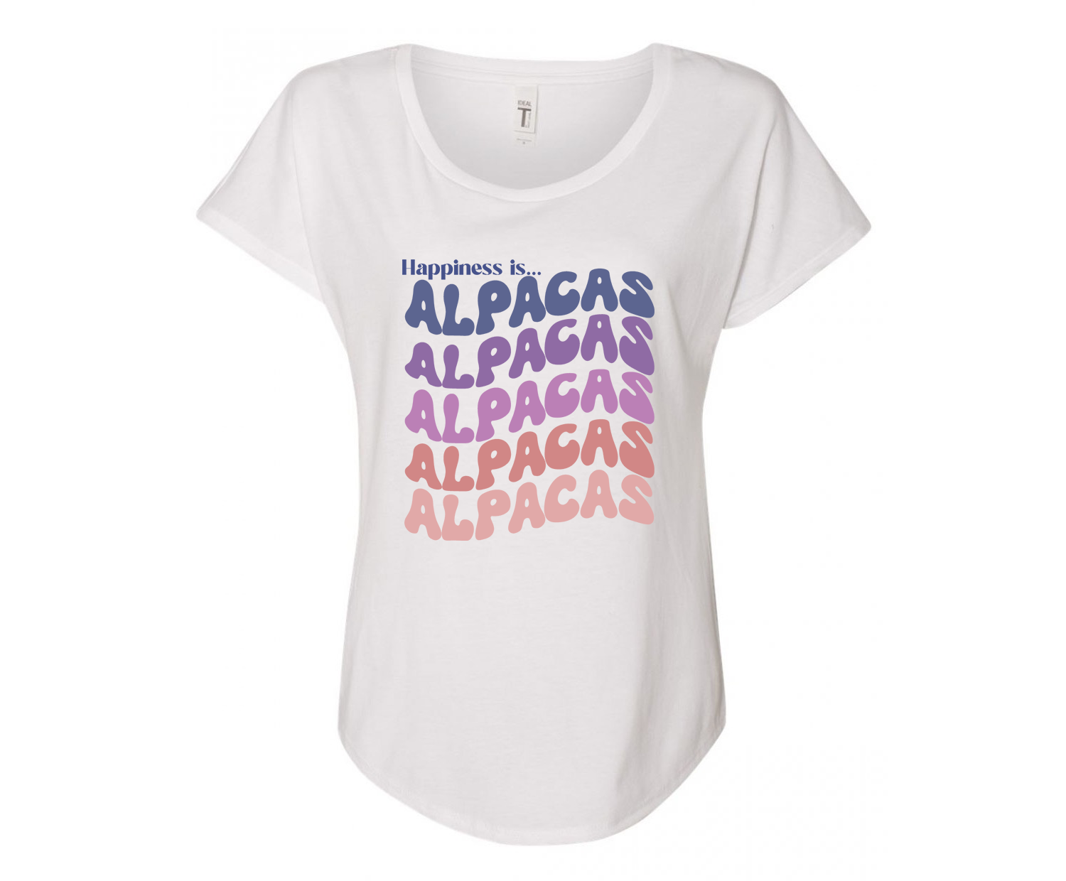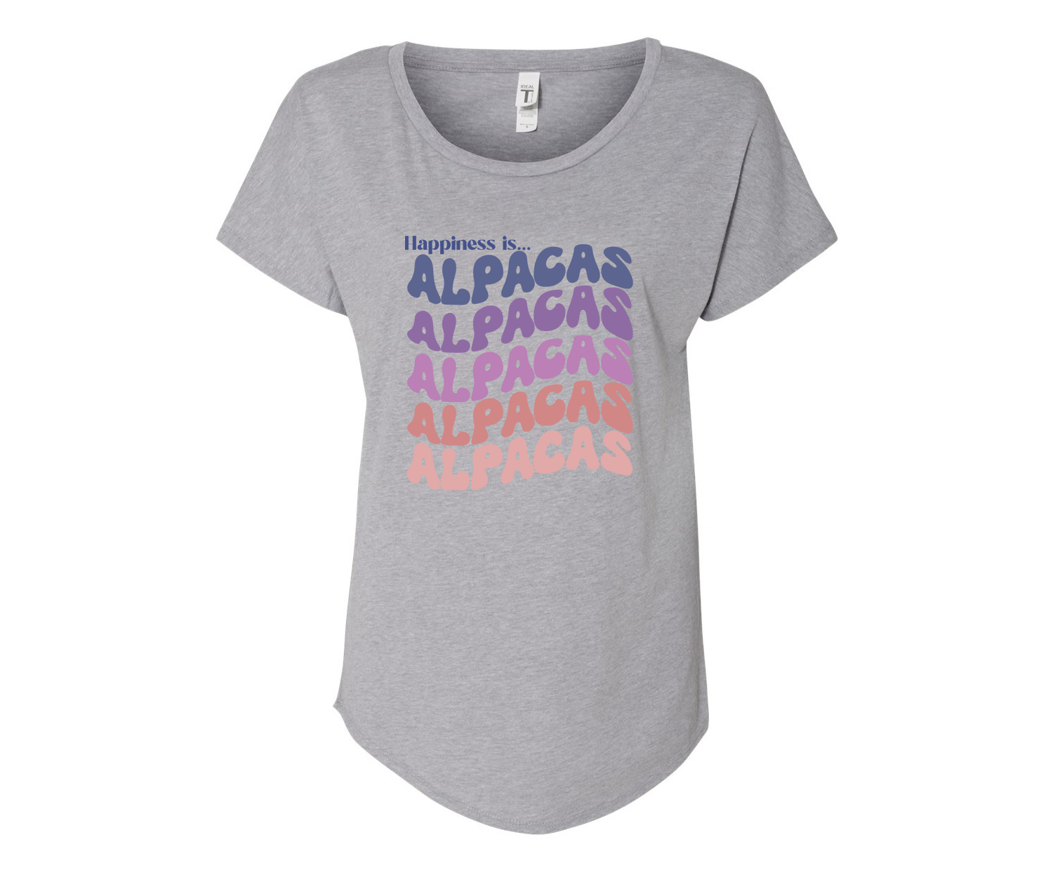Happiness is Alpacas Ladies Tee Shirt - In White & Grey
