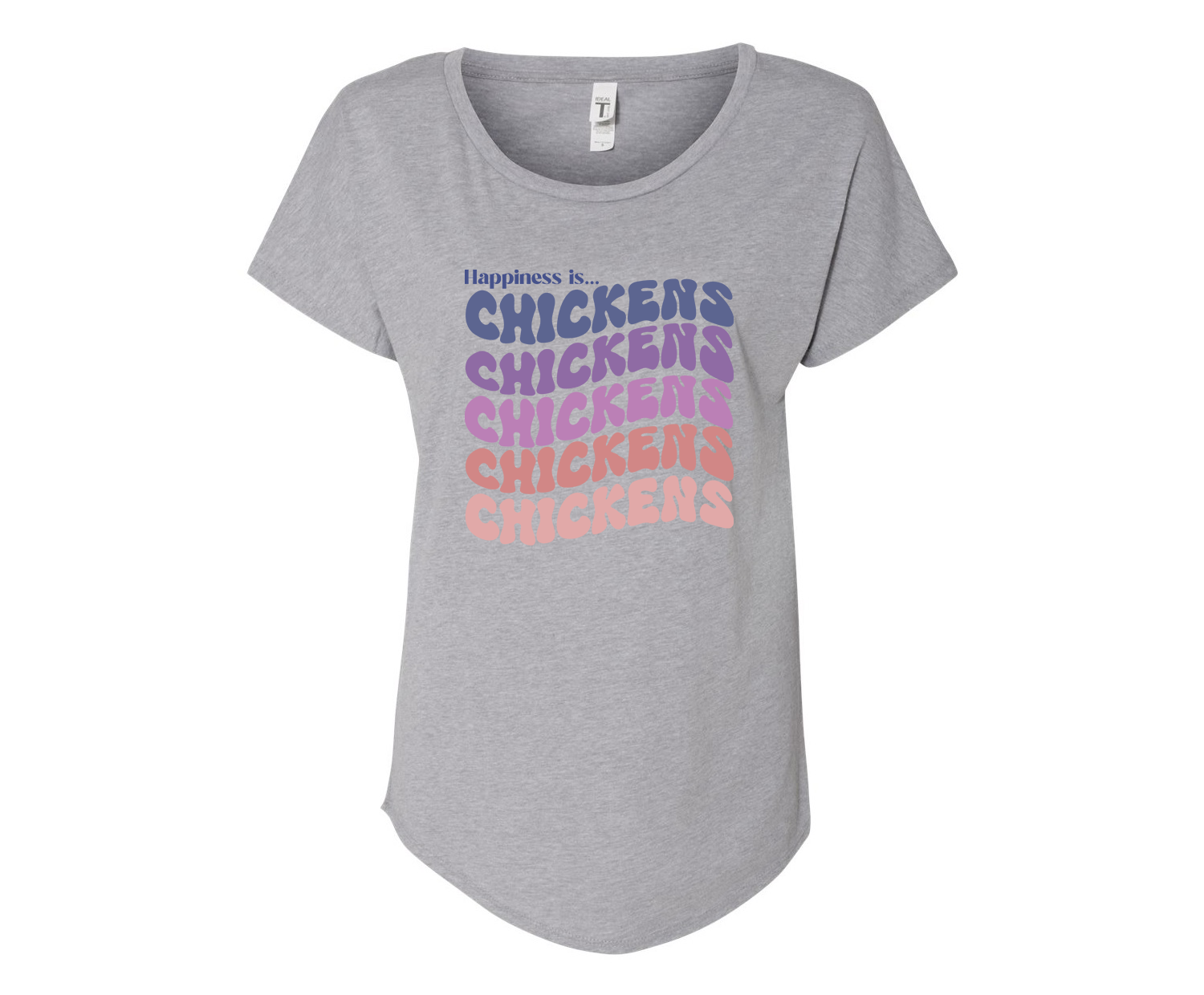 Happiness is Chickens Ladies Tee Shirt - In White & Grey