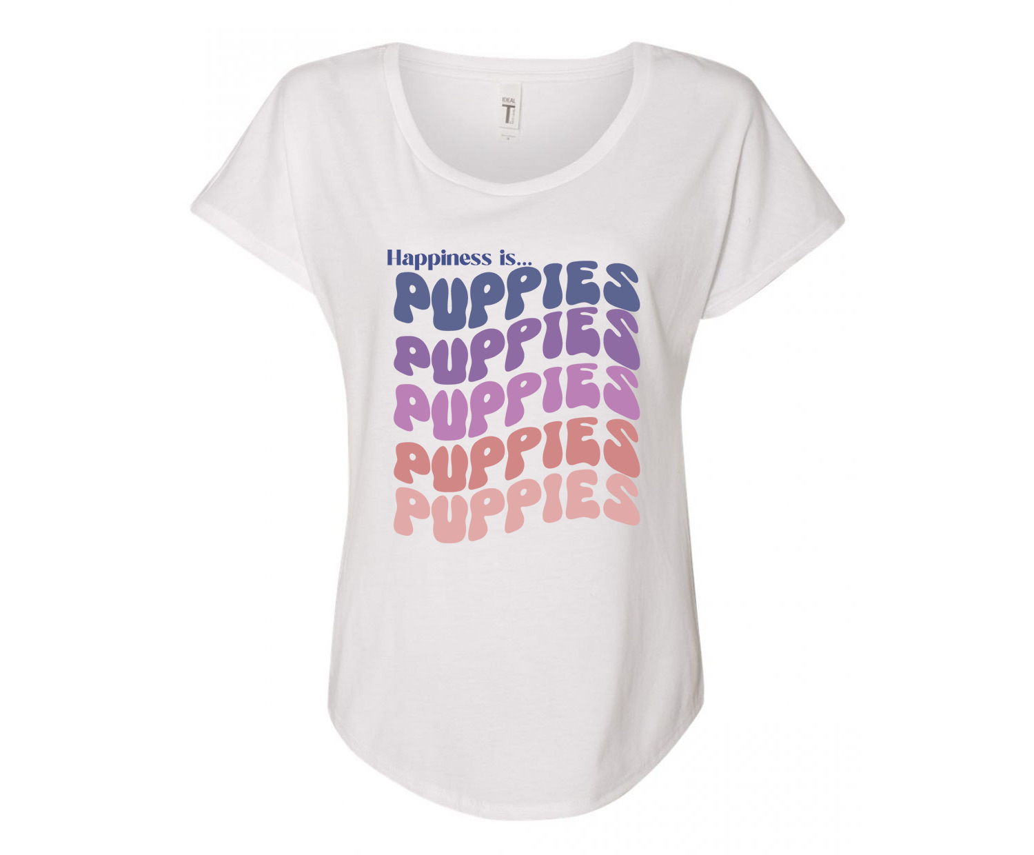 Happiness is Puppies Ladies Tee Shirt - In White & Grey