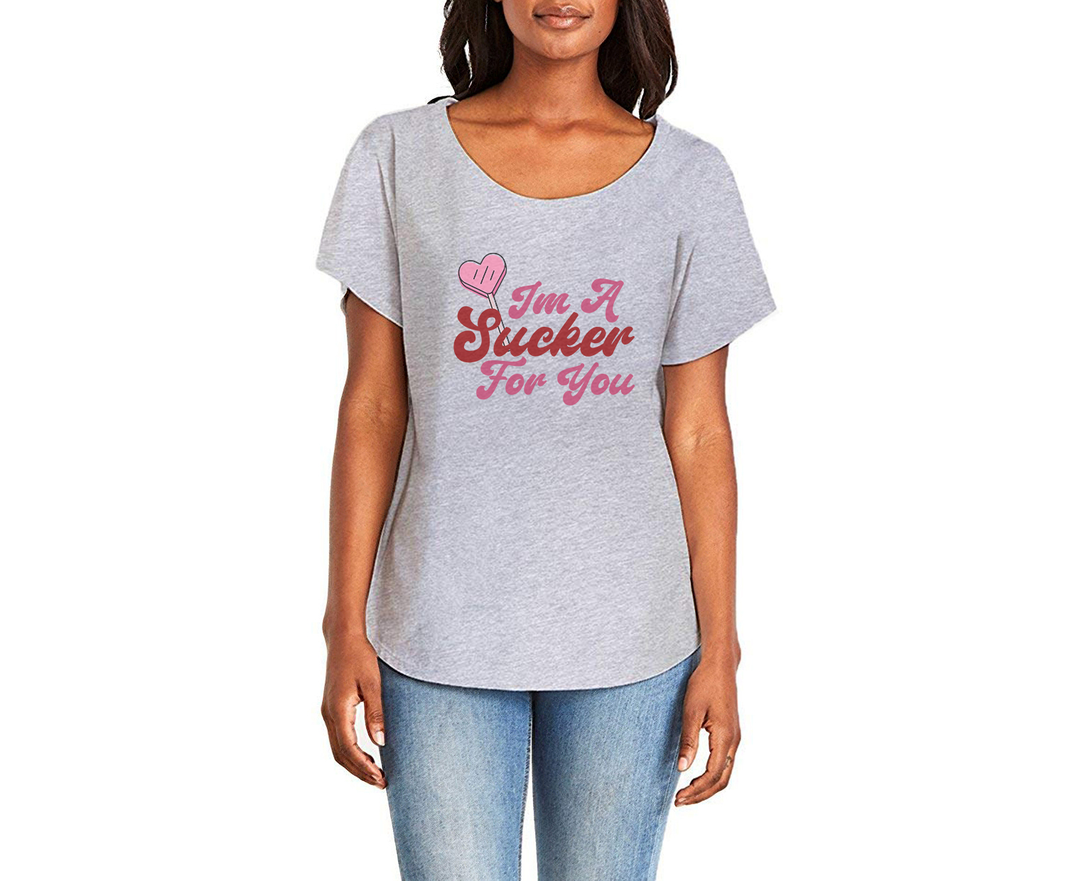 I'm A Sucker For You Ladies Tee Shirt - In Grey & White