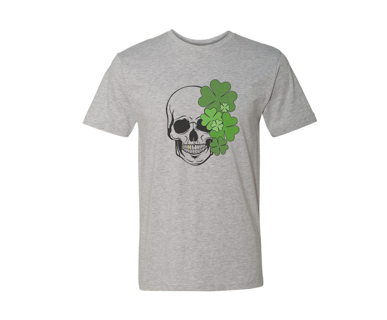 Lucky Clover Skull Men's Fit Tee Shirt - Grey