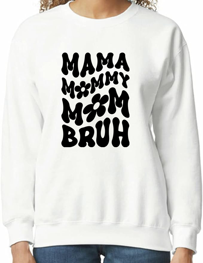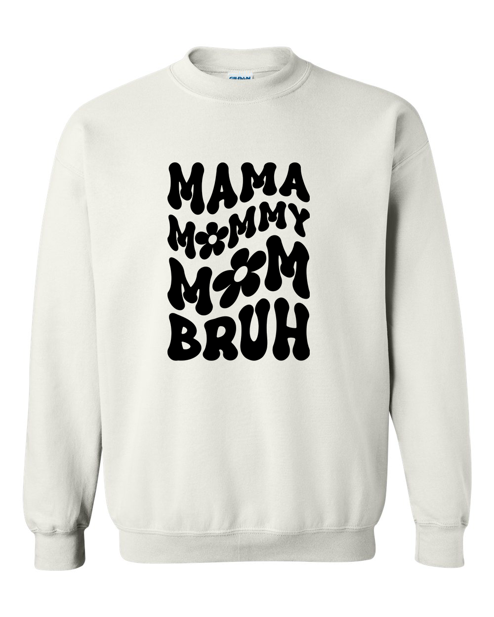 Mama Mommy Mom Bruh Daisy Wavy Crewneck Sweatshirt - In Grey & White