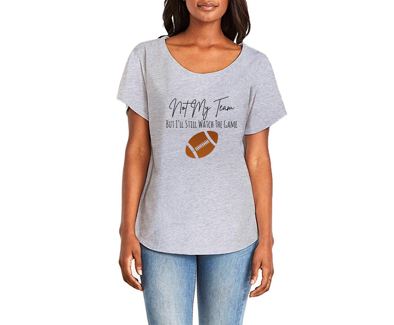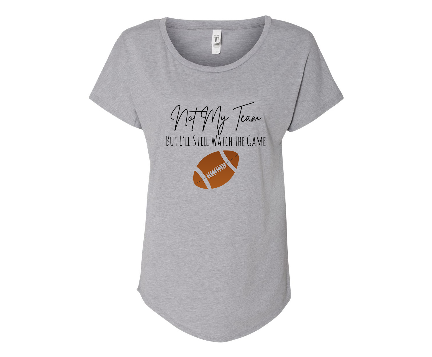 Not My Team But I'll Still Watch The Game Football Ladies Tee Shirt - In Grey & White