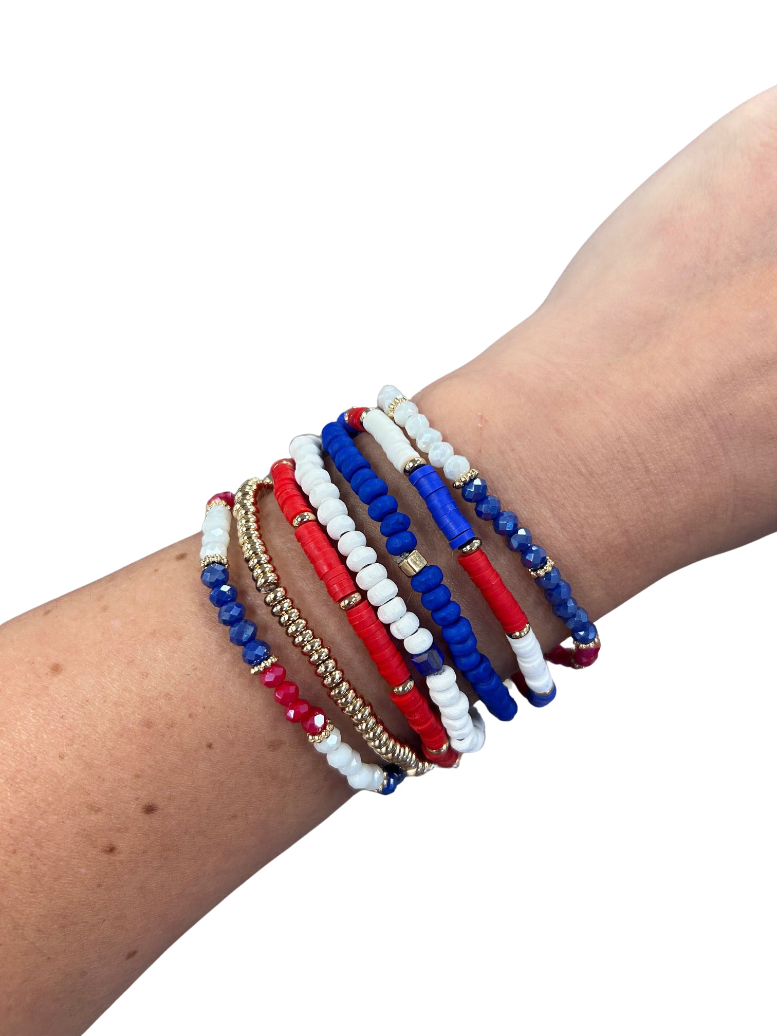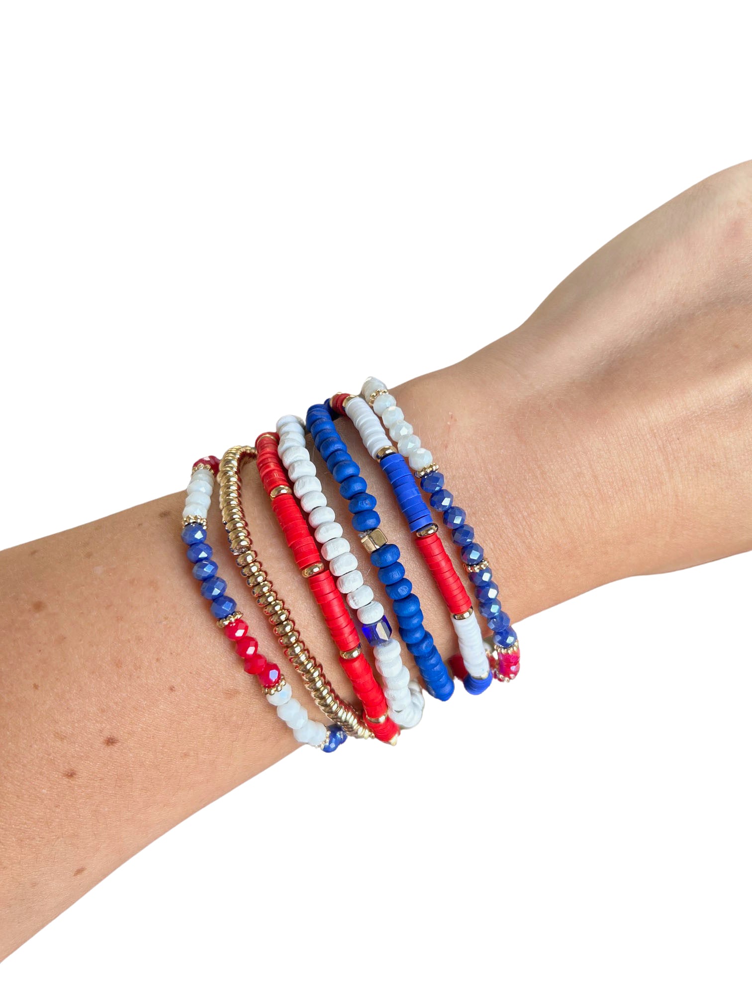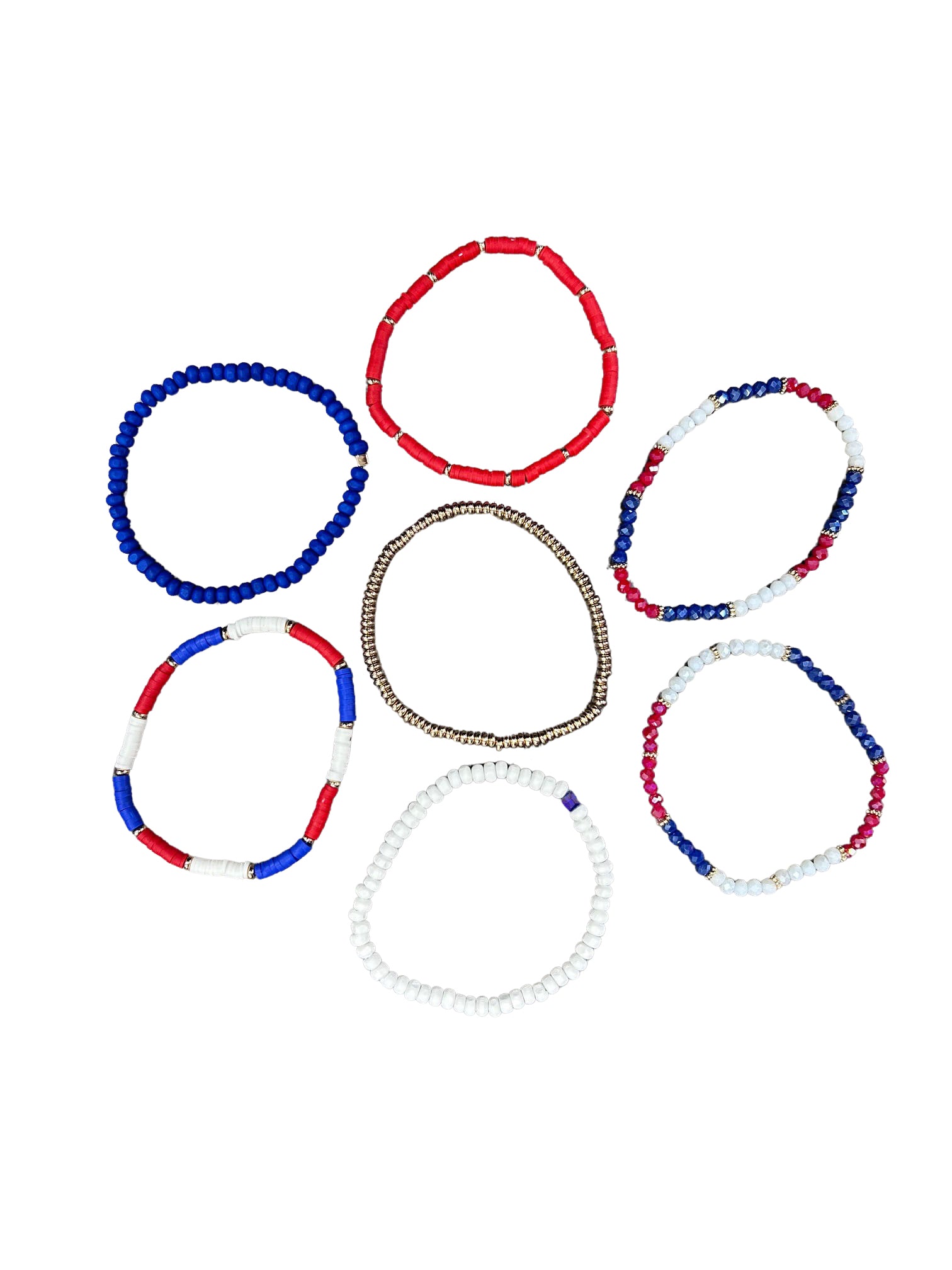 Patriotic Mini Glass, Wood, & Fimo Bead Bracelets - 7 Pack
