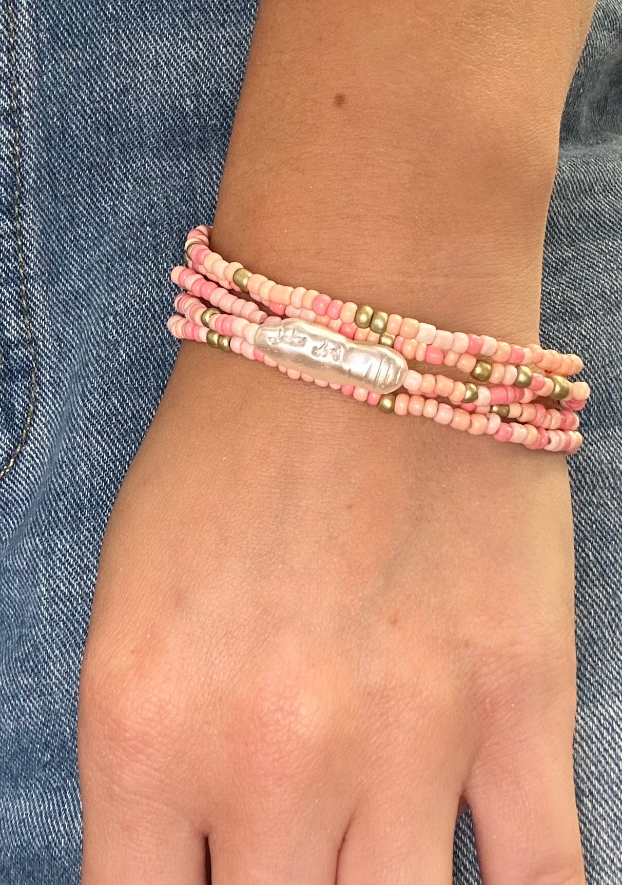 Sea Shell Beaded Zipper Coin & Card Bag - Pink