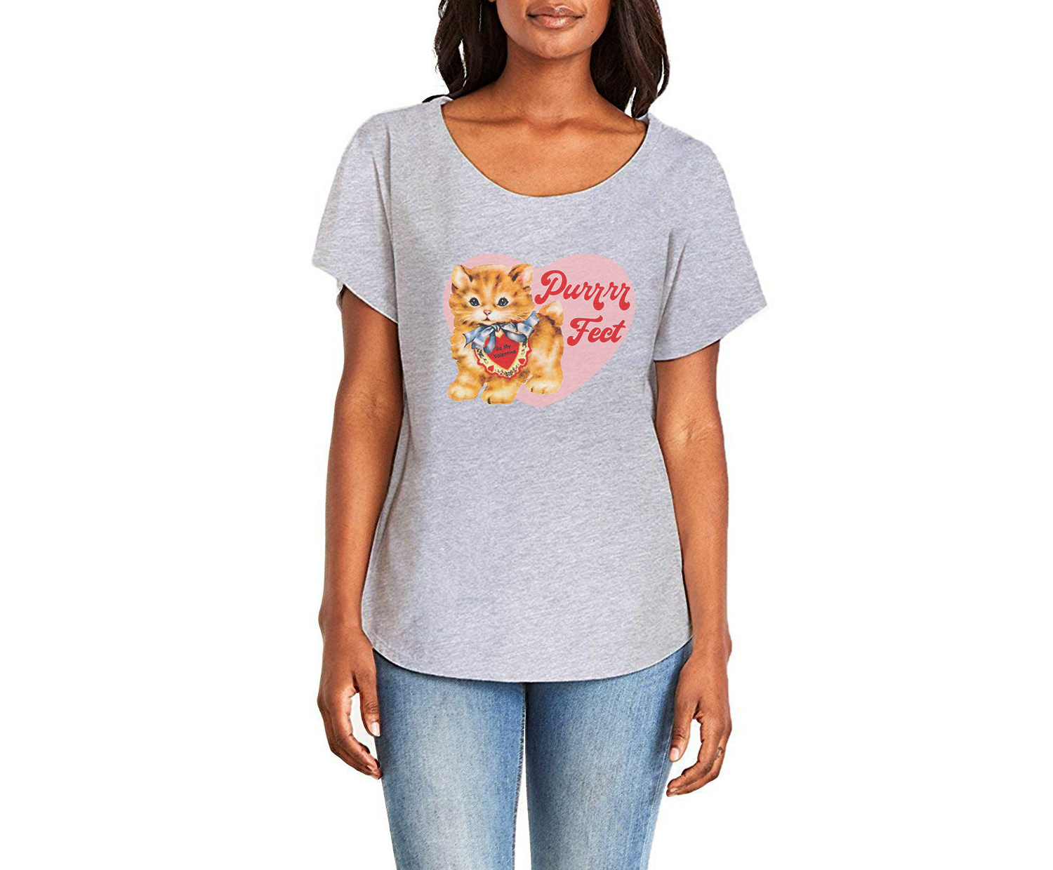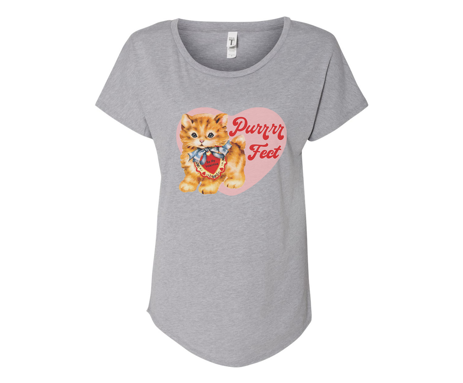 Perrrrfect Ginger Cat Ladies Tee Shirt - In Grey & White