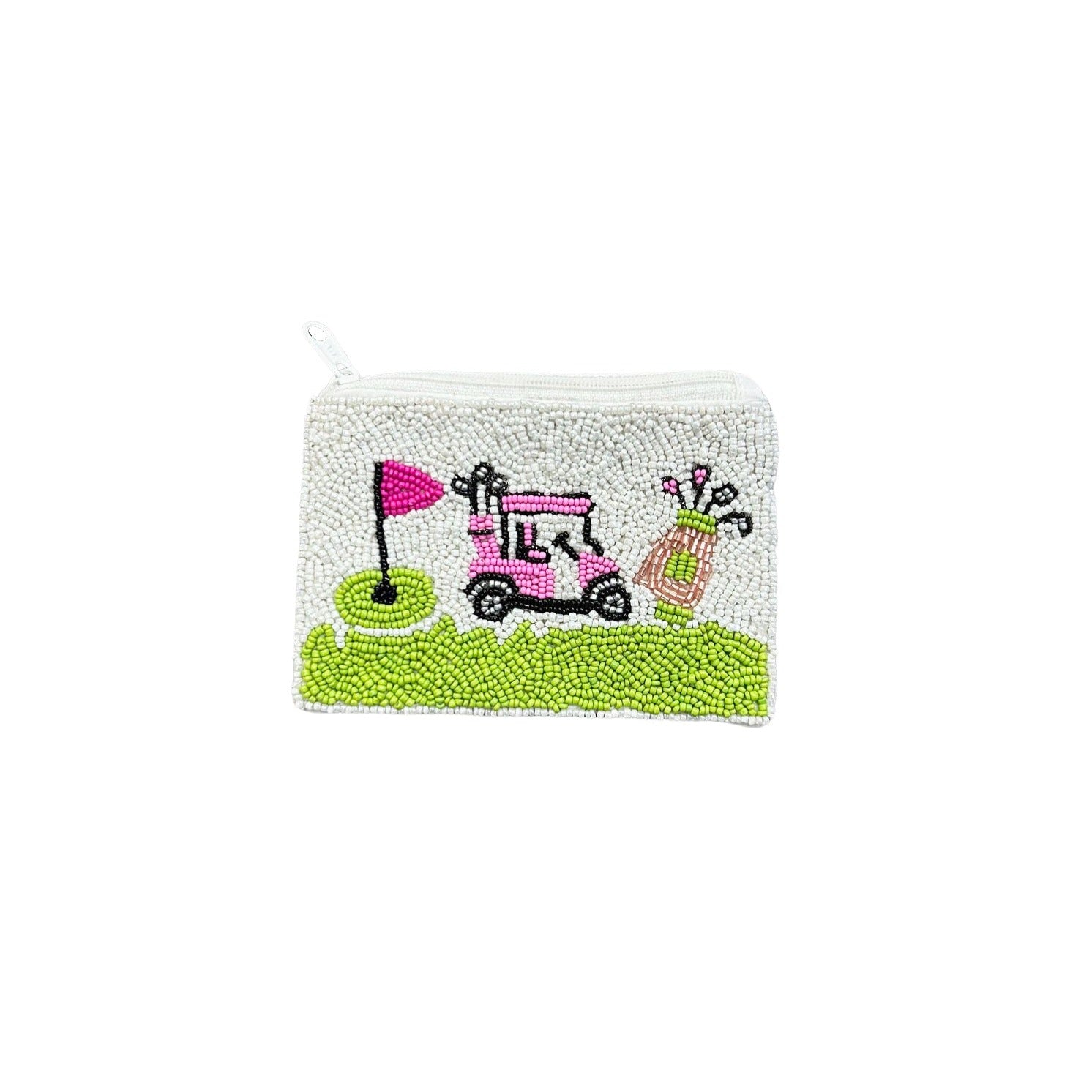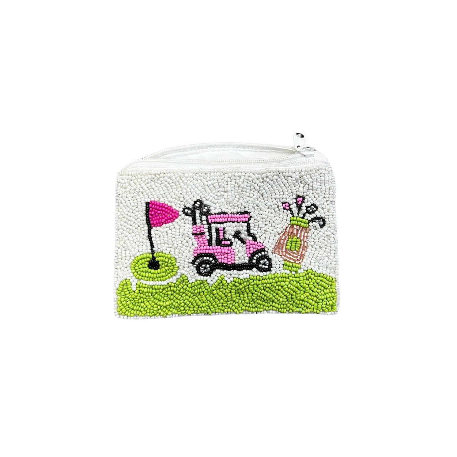 Pink Golf Cart Beaded Zipper Coin & Card Bag