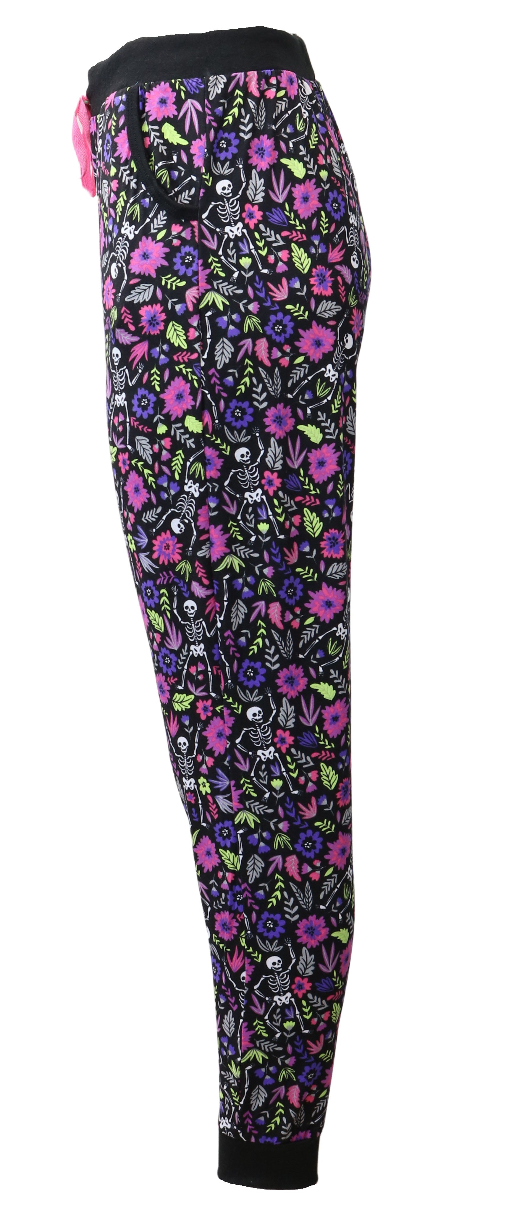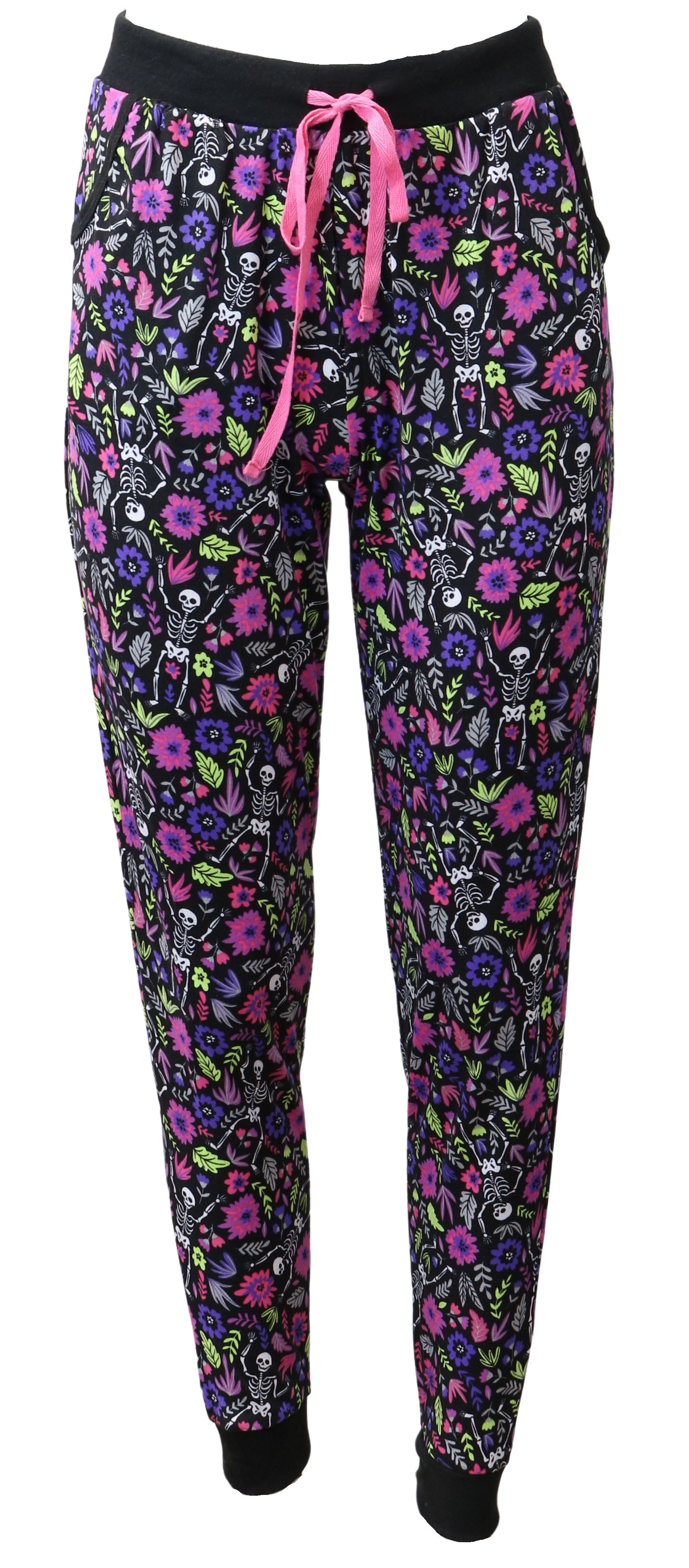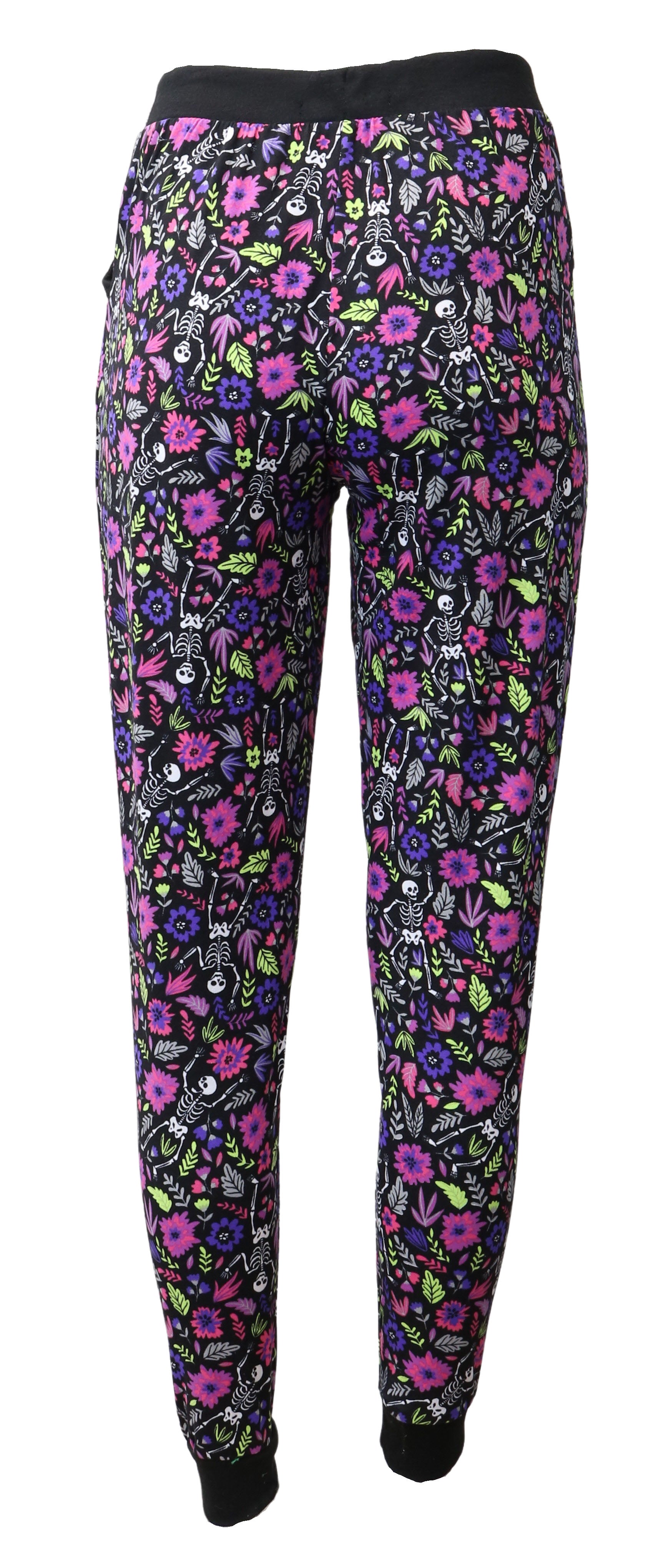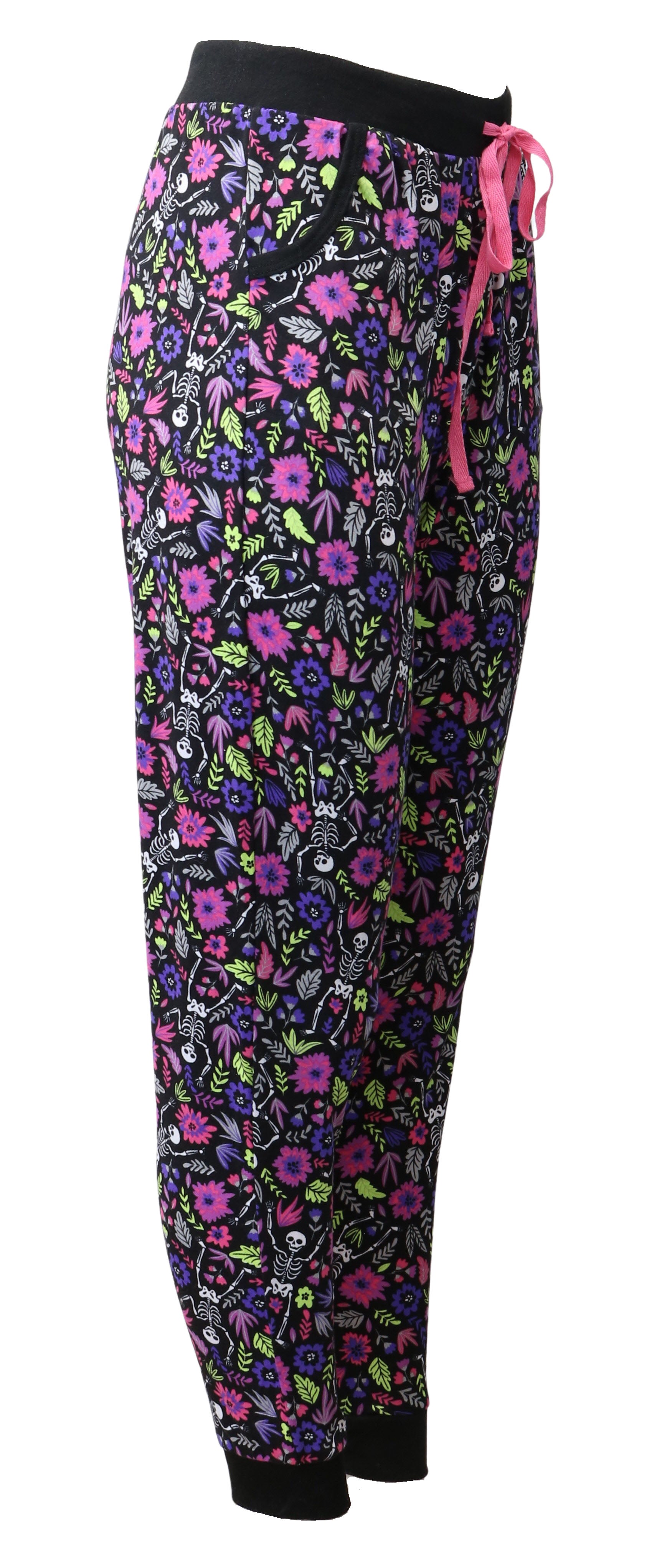 Purple Floral Skull Jogger Pajama Set w/ Pockets