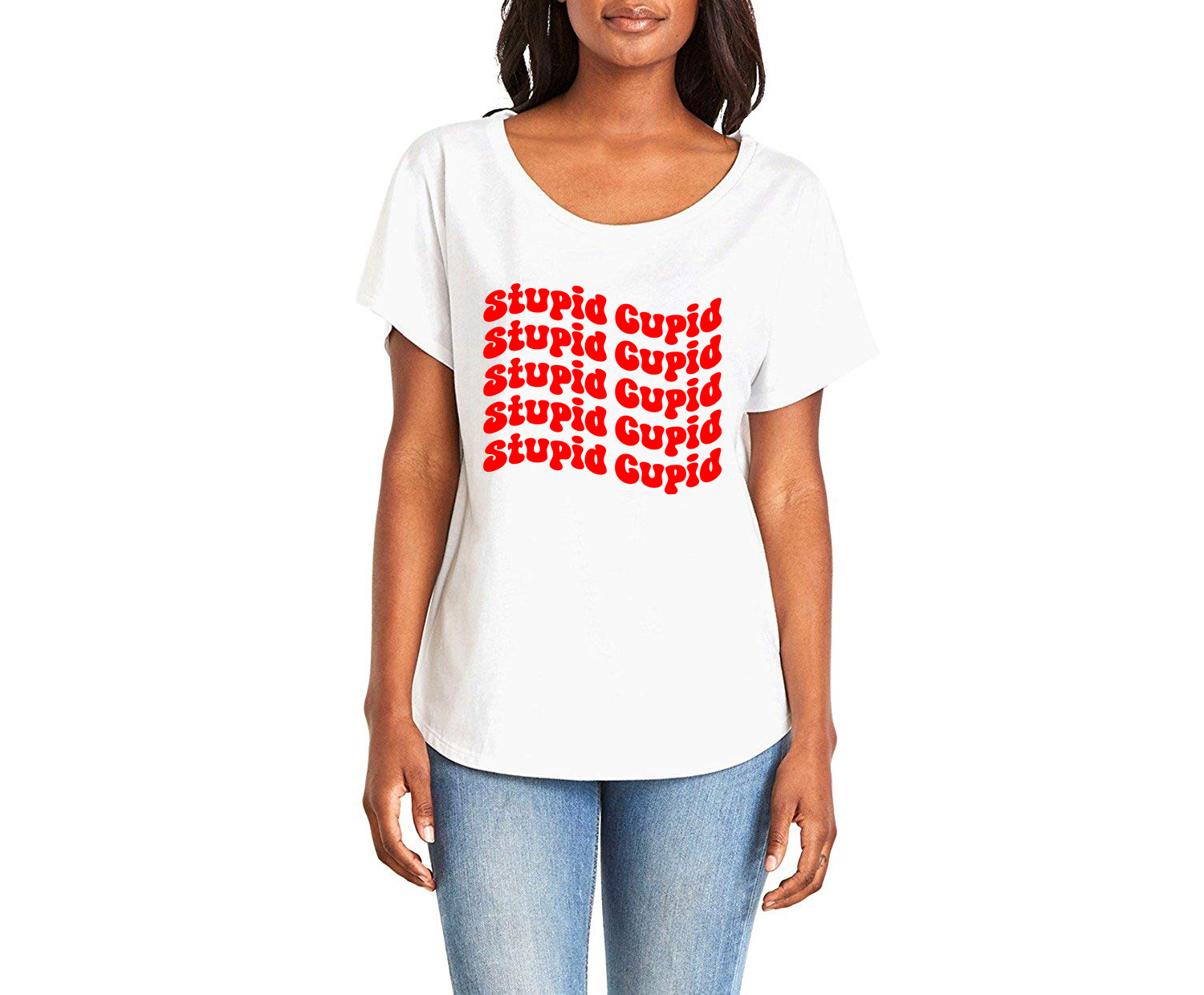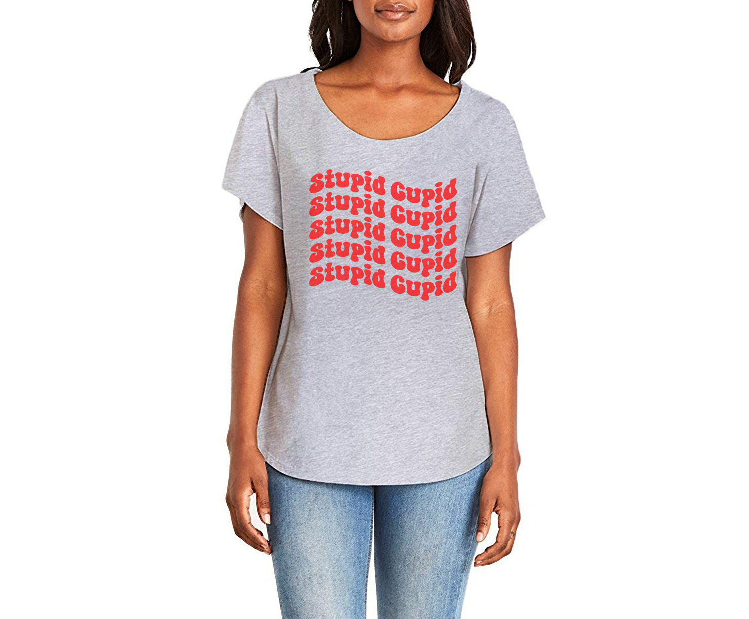 Stupid Cupid Ladies Tee Shirt - In Grey & White