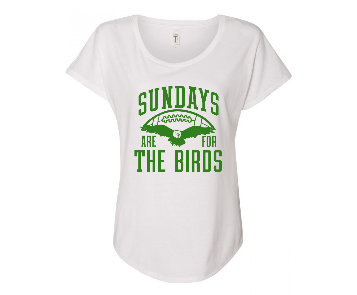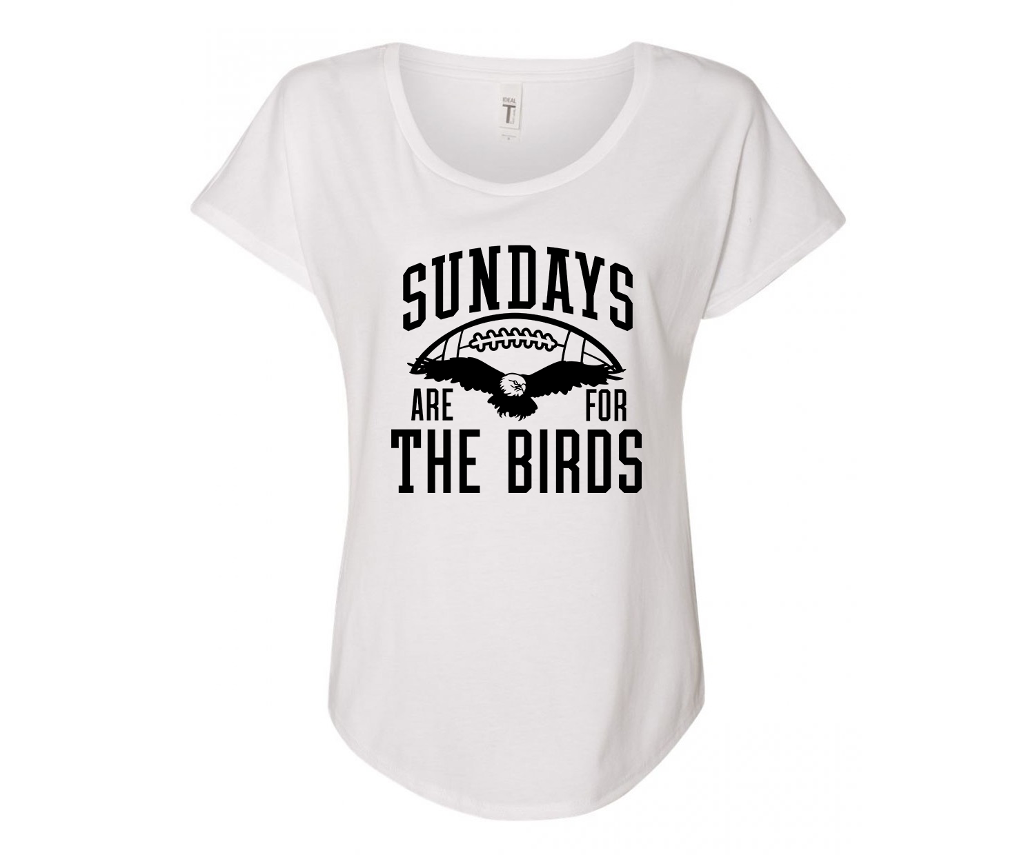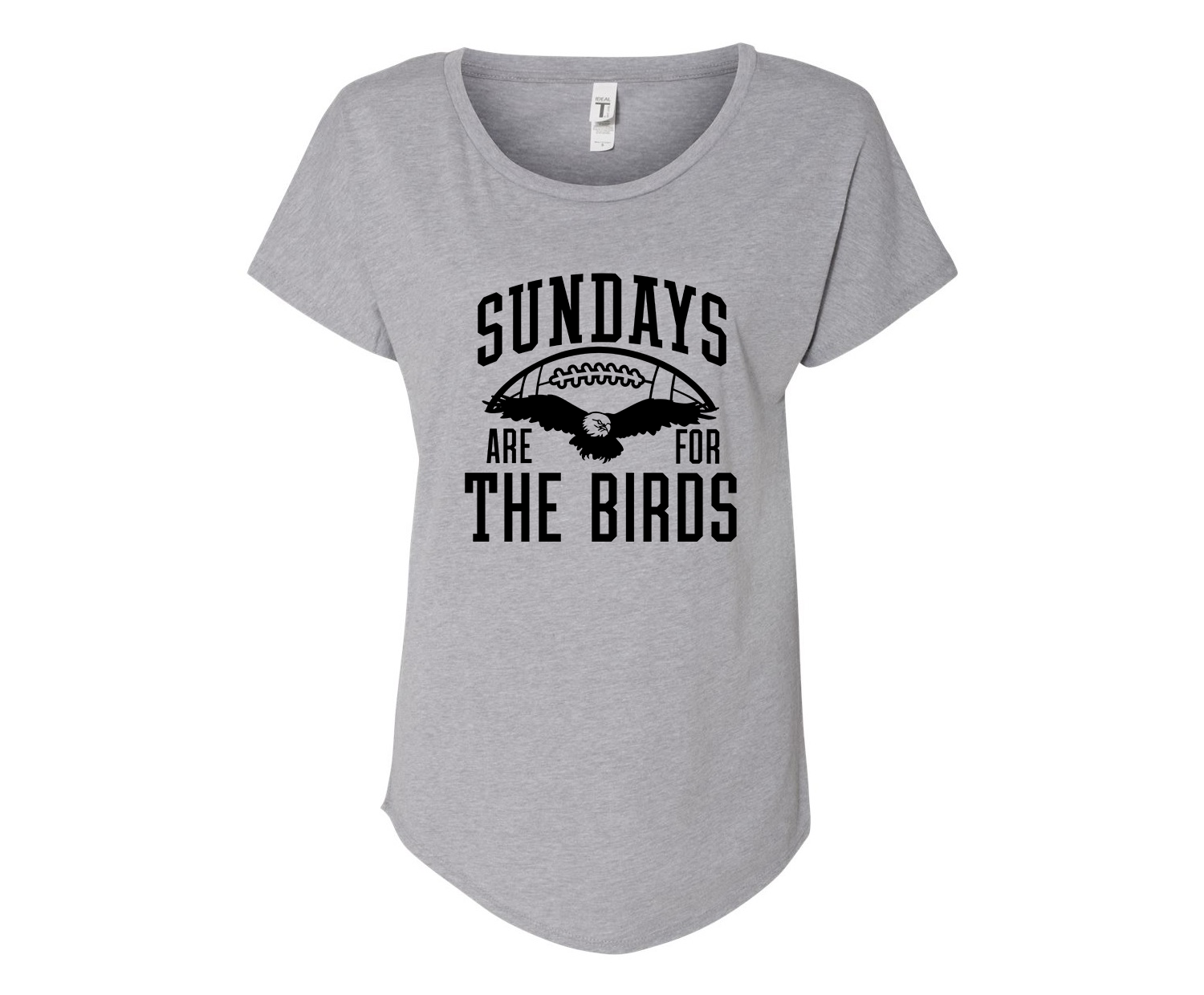 Our ladies shirts are printed on a Next Level Apparel Women's Ideal Dolman