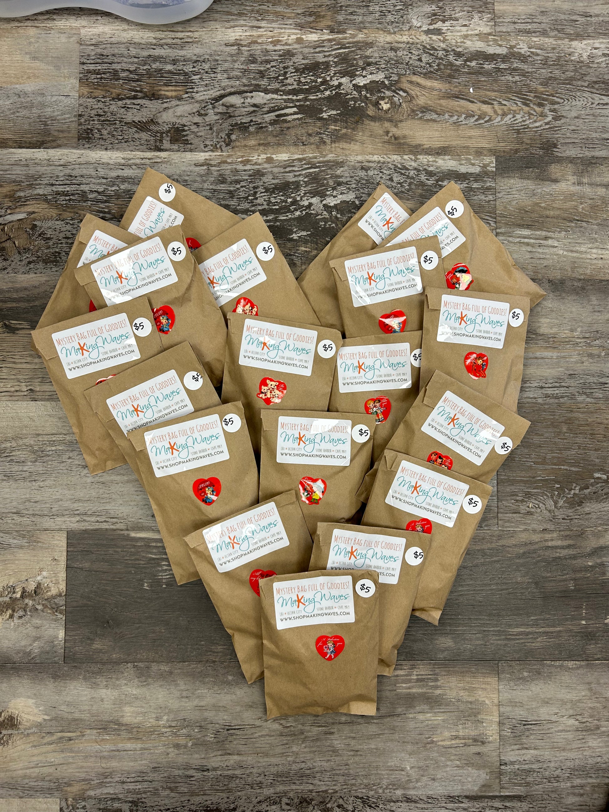Add a little fun and mystery to your day with our famous grab bags. Each bag is filled with 3 holiday Valentine themed items including jewelry, hair accessories, bags, keychains, and novelty items.